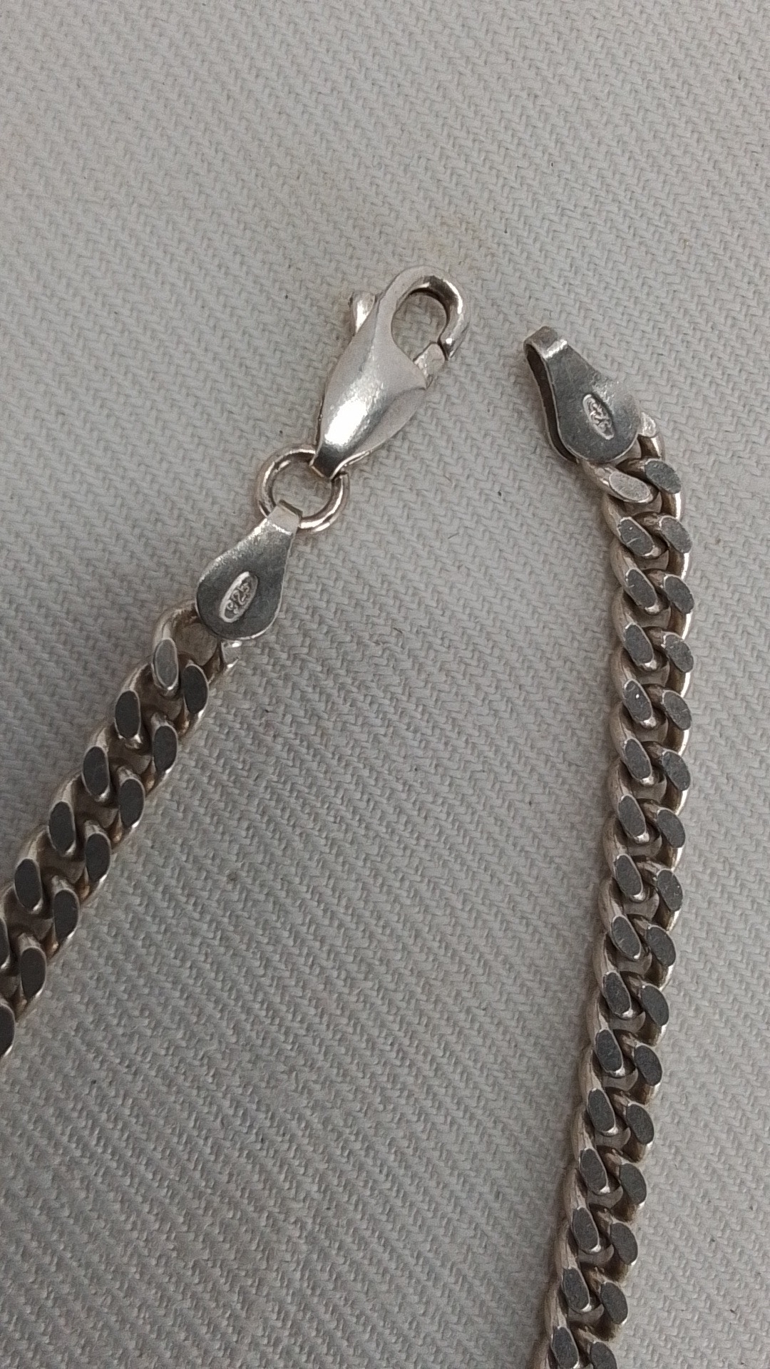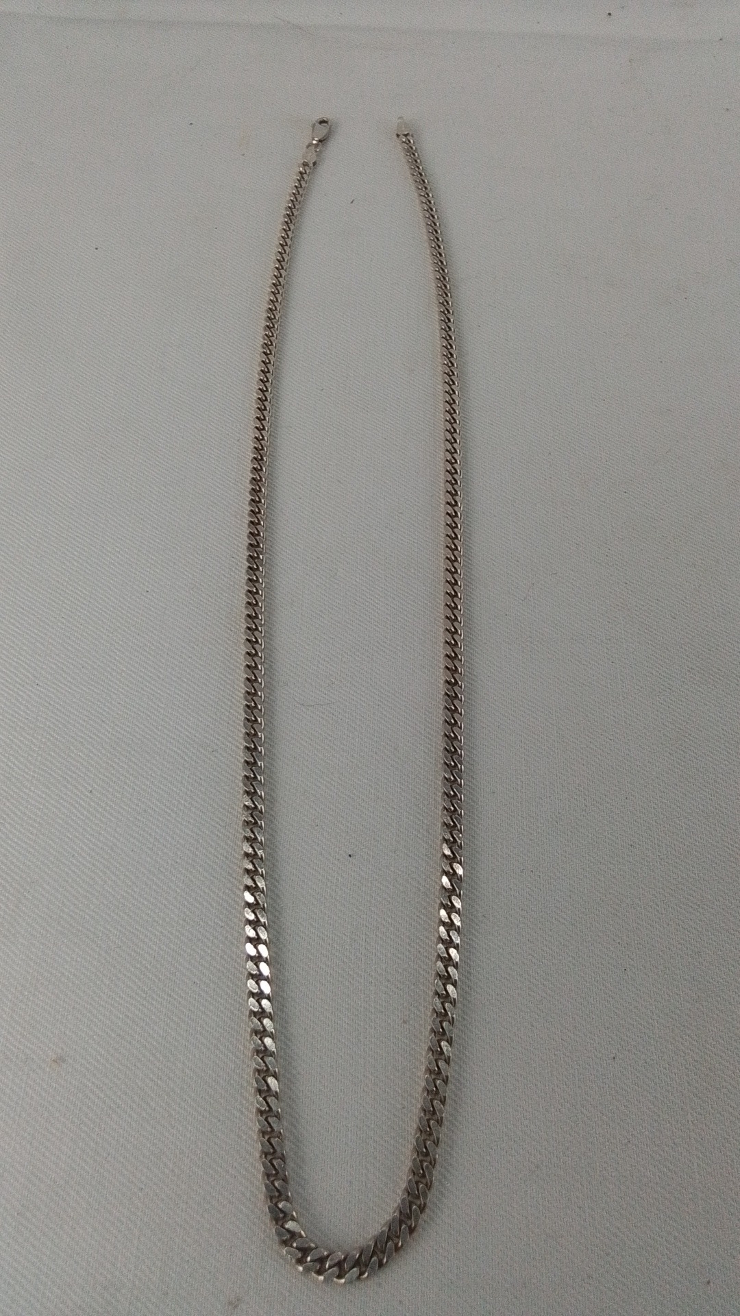A sterling silver curb-link necklace with lobster-claw clasp, marked “925” to the end fittings, 23.5g.