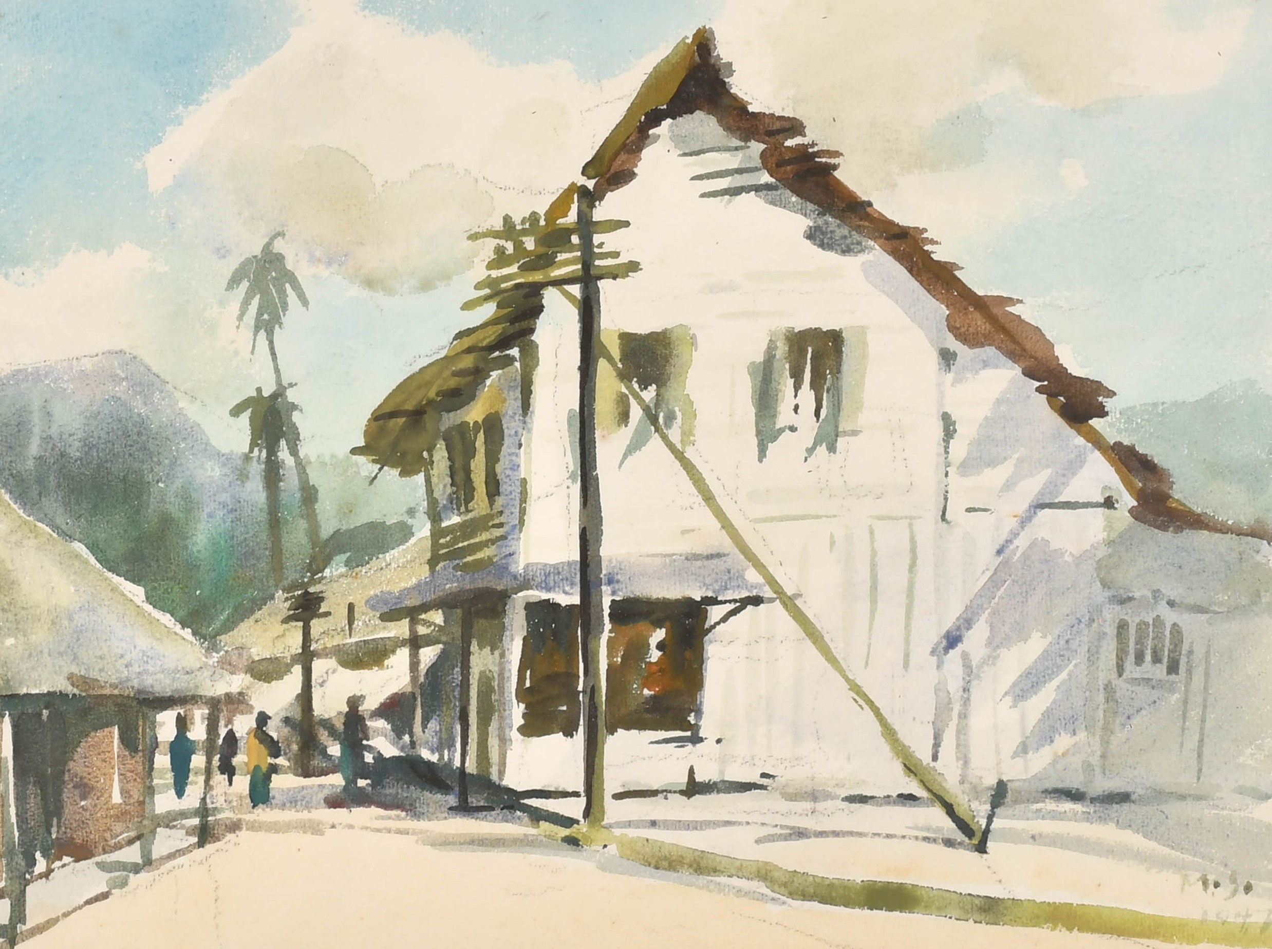Mun Sen Yong (1896-1962) Malaysian. Village Scene, Watercolour, Signed with initials and dated 1947, 10.5" x 14.5" (26.7 x 36.8cm)