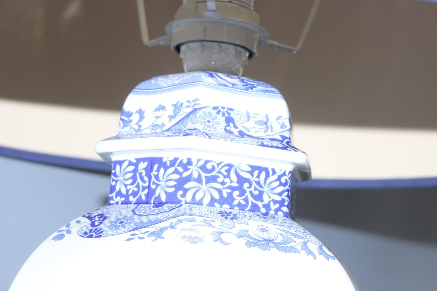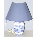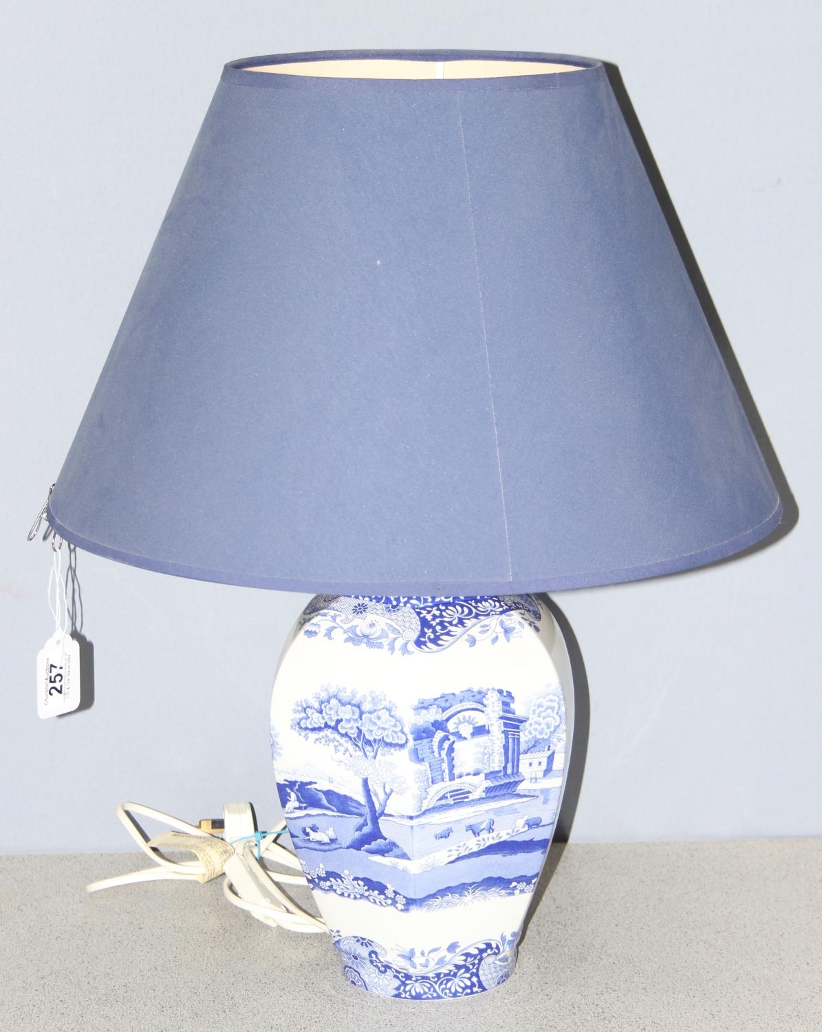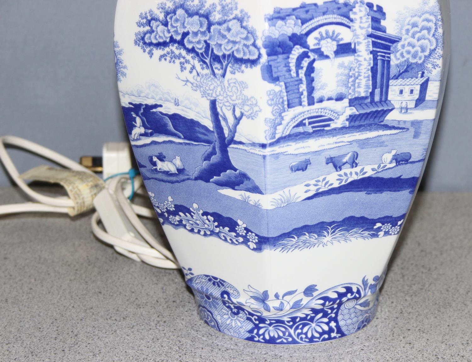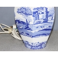 A Spode blue and white Italian pattern table lamp with shade, approx 60cm tall inc shade