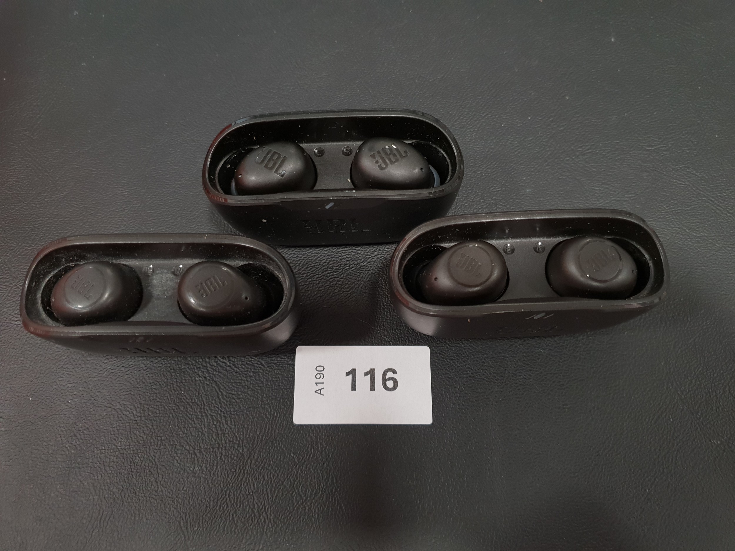 THREE PAIRS OF JBL EARBUDS IN CHARGING CASES