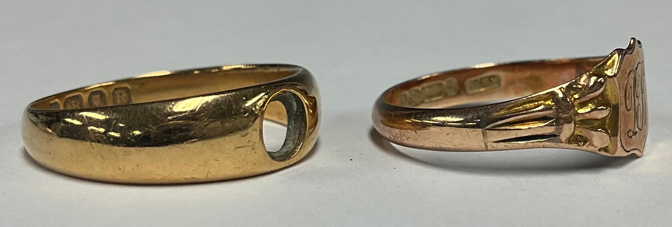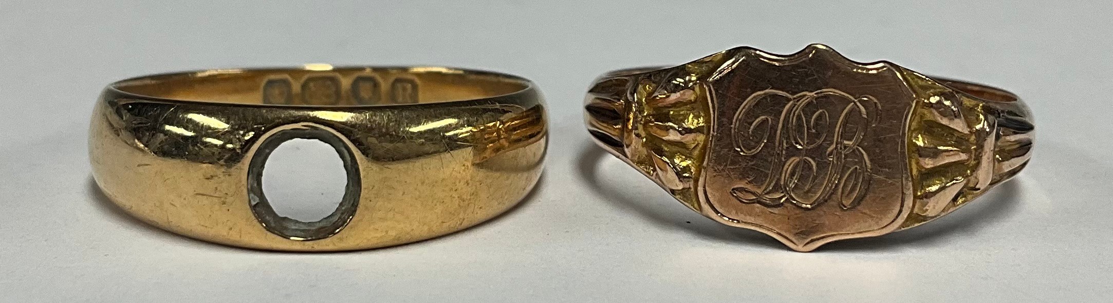 A 9ct gold signet ring, size S, 2.2g; another, 18ct, 4.1g (2)