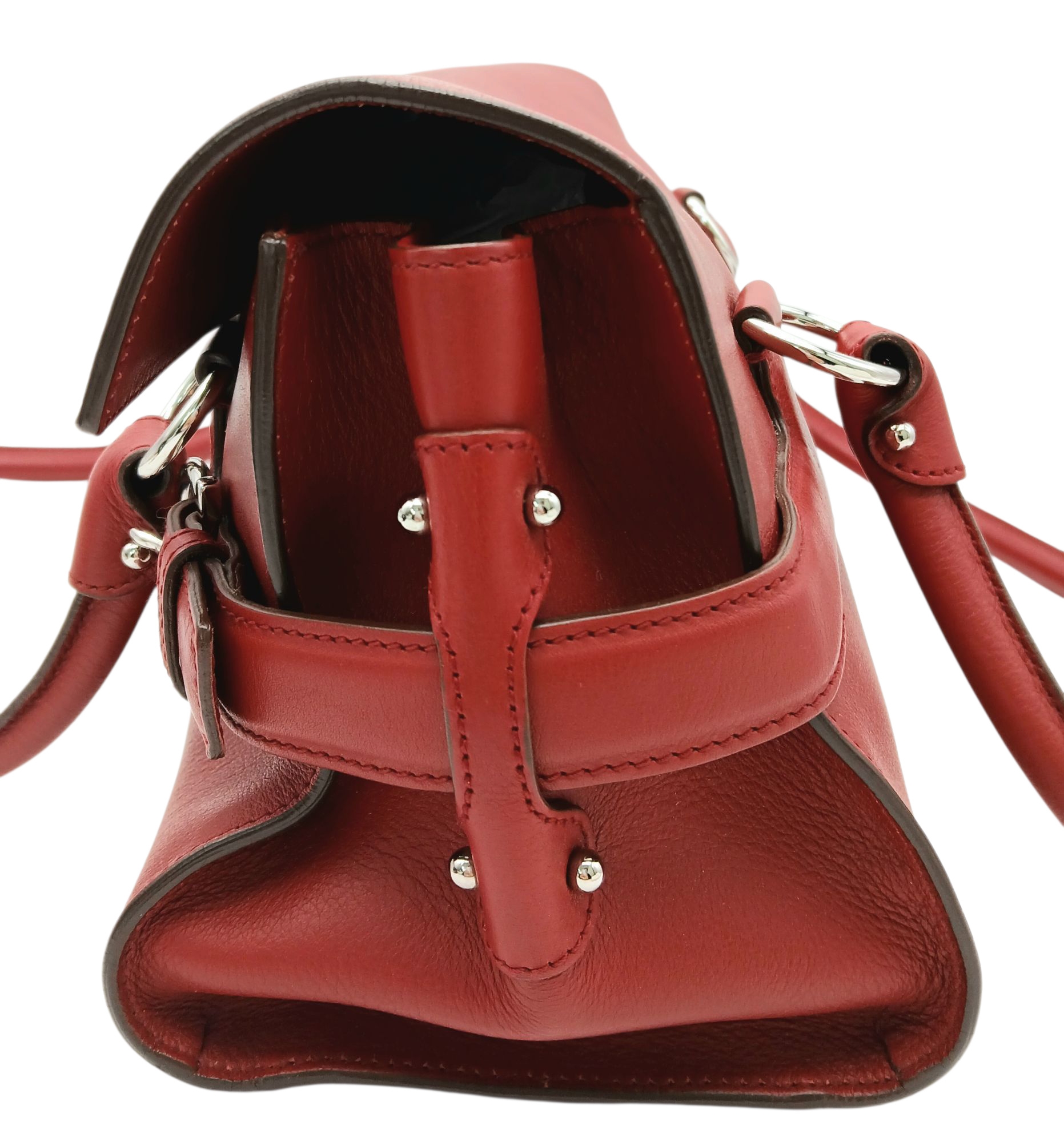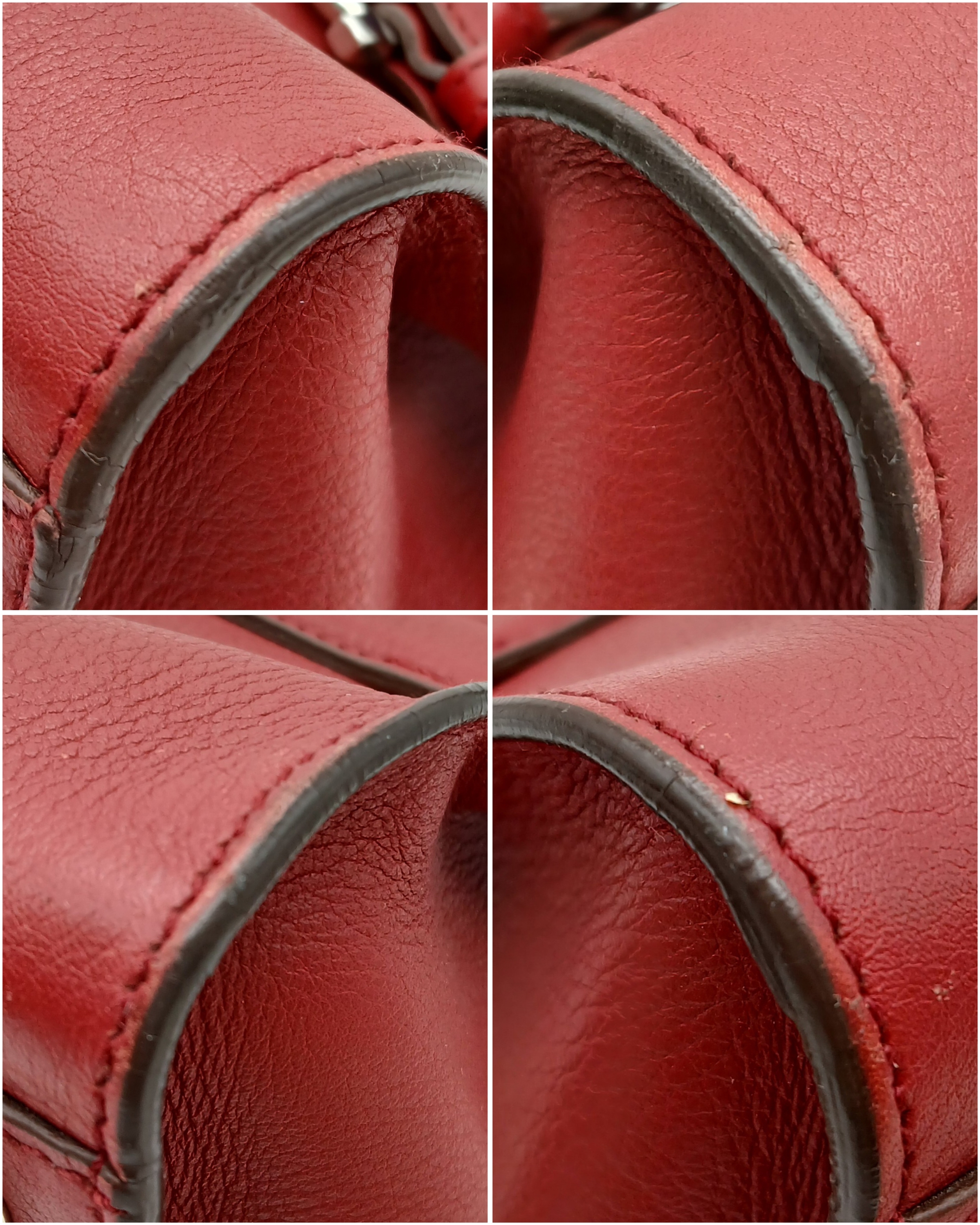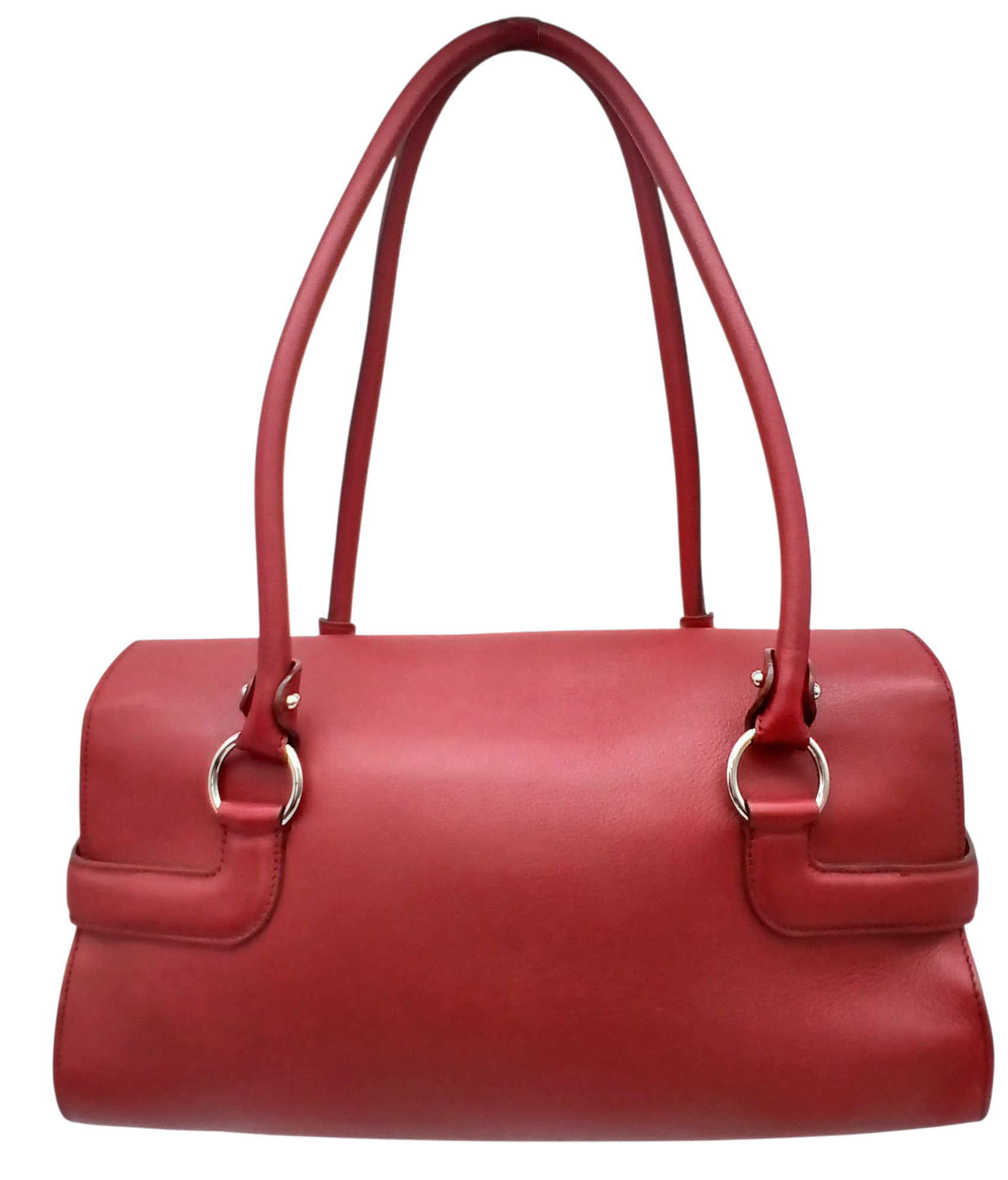 A Salvatore Ferragamo Red Leather Handbag. Red leather exterior with silver-toned hardware, dual top handles and Gancini turn-lock closure. Red leather interior with a zipped inner pocket. Some signs of wear exterior but in good condition overall. Approx 32cm length x 15cm height x 13cm depth. Comes with a dust cover. Please see photos or request a condition report. Ref: STK022935