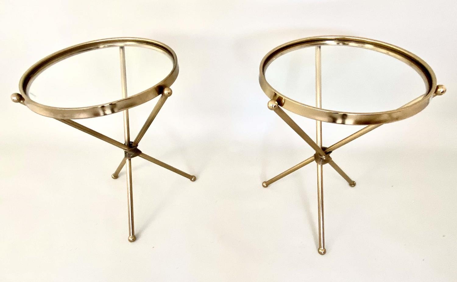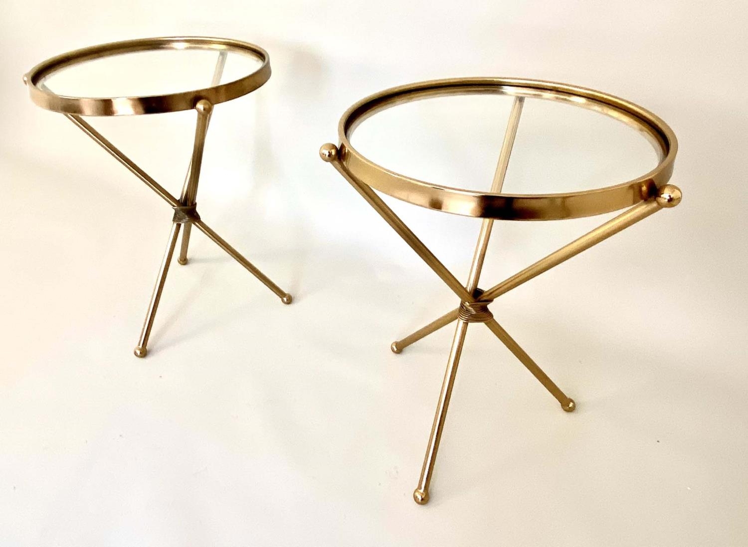 SIDE TABLES, a pair, 1950s Italian style, gilt metal and glass, 55cm x 43cm x 43cm. (2)