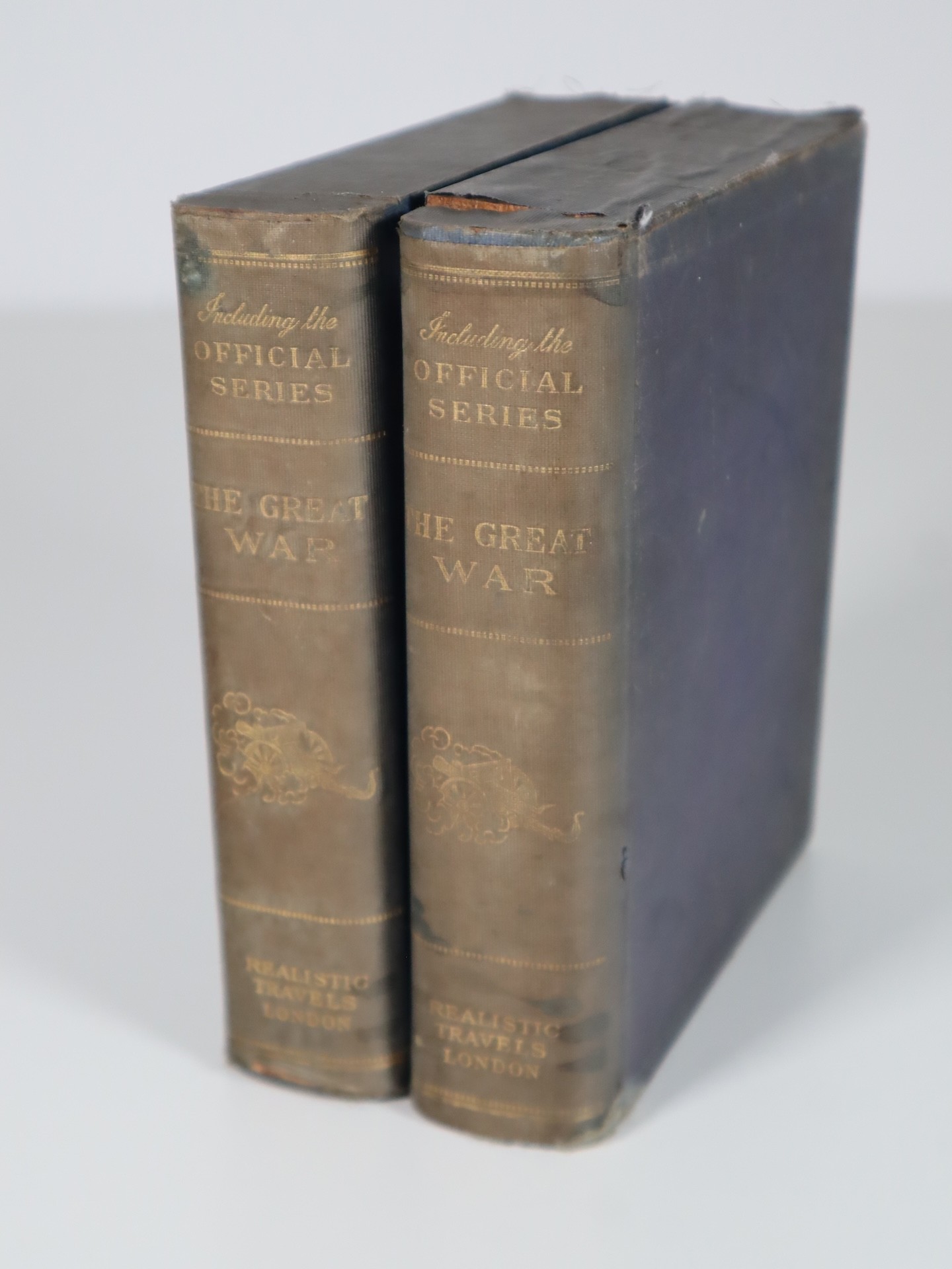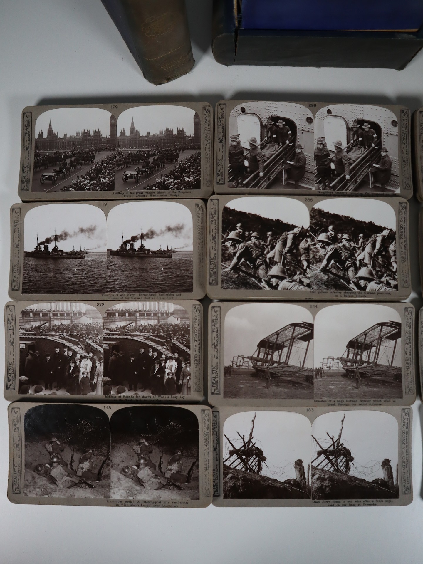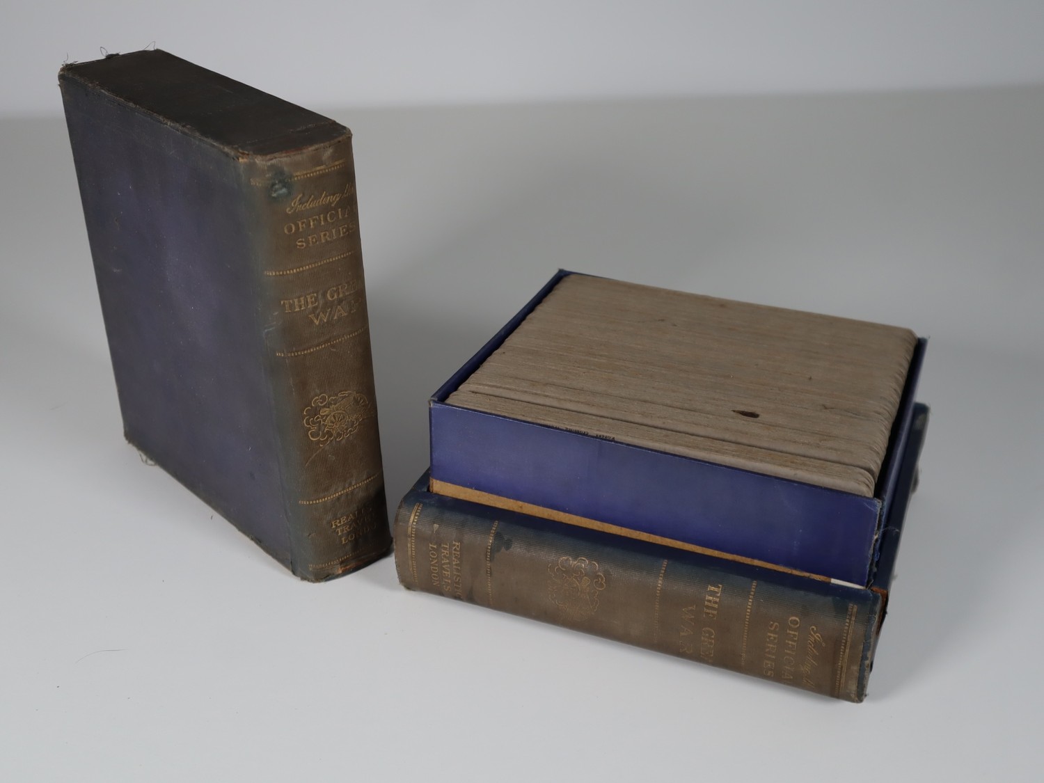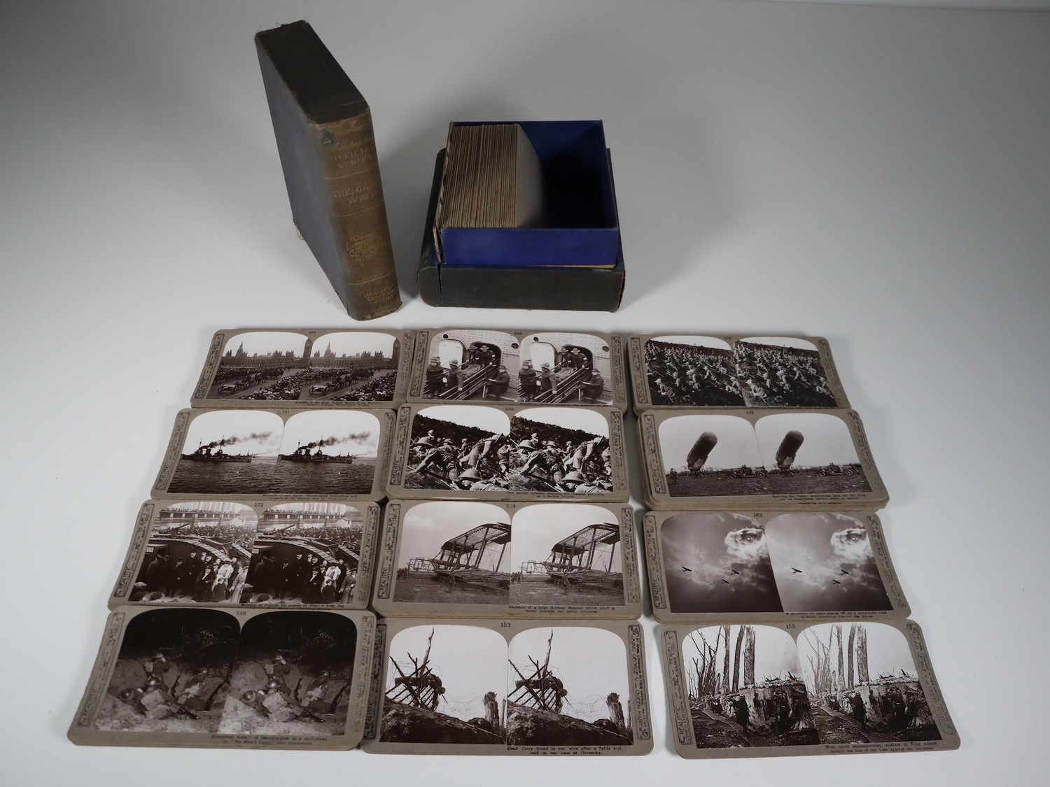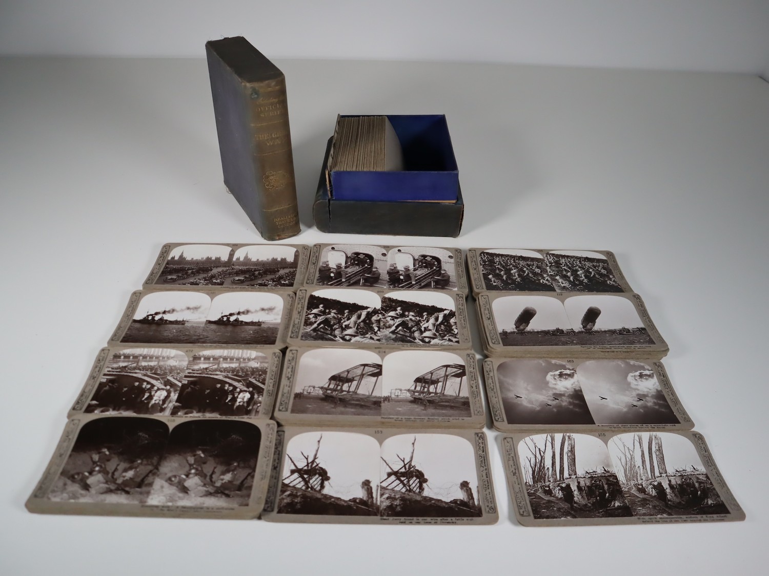 The Great War Official Series by Realistic Travels London numbered stereoscopic photographs c.80-100 photographs within original book style cloth-covered boxes c.1918-1920