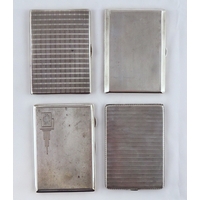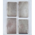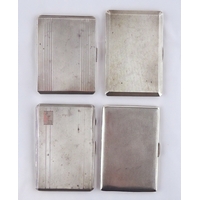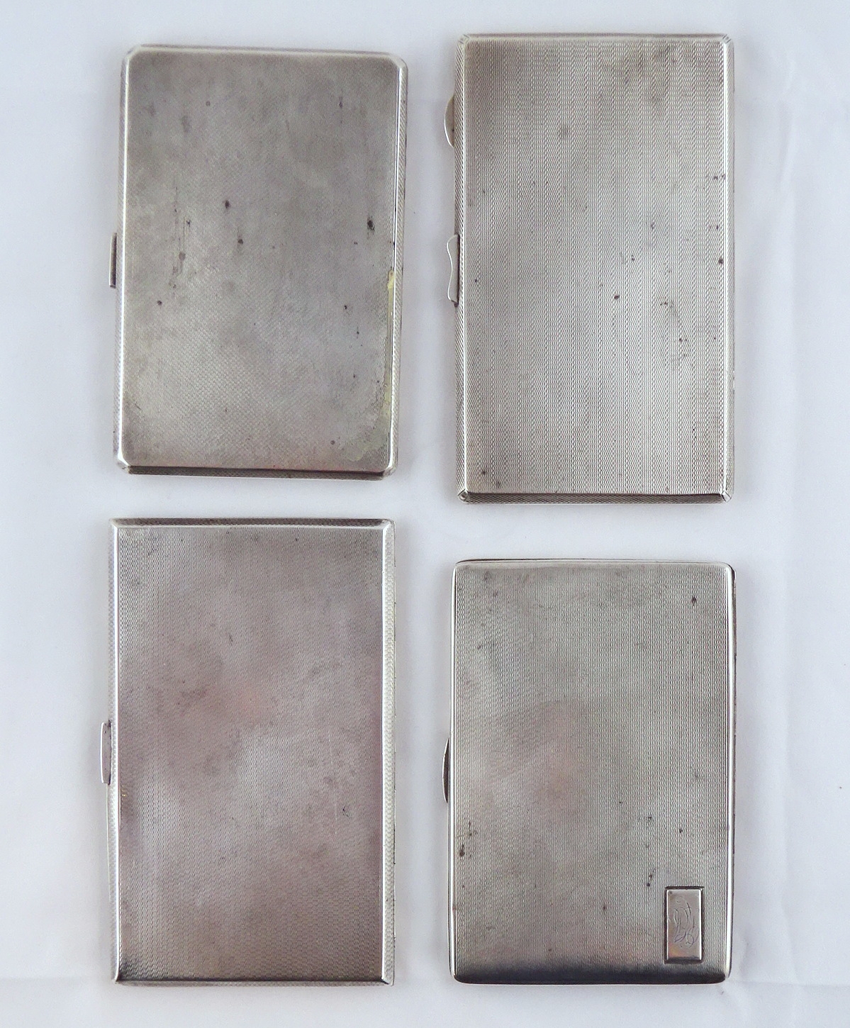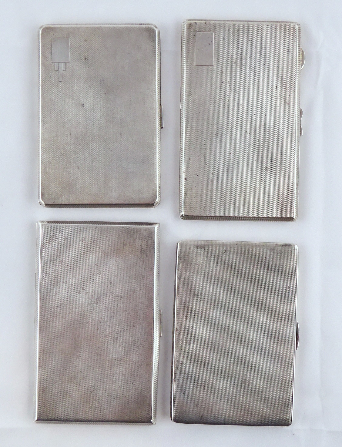 Four various silver cigarette cases, the largest 142 x 87mm. 735gr. (by instruction of the family of Dame Fanny Waterman)