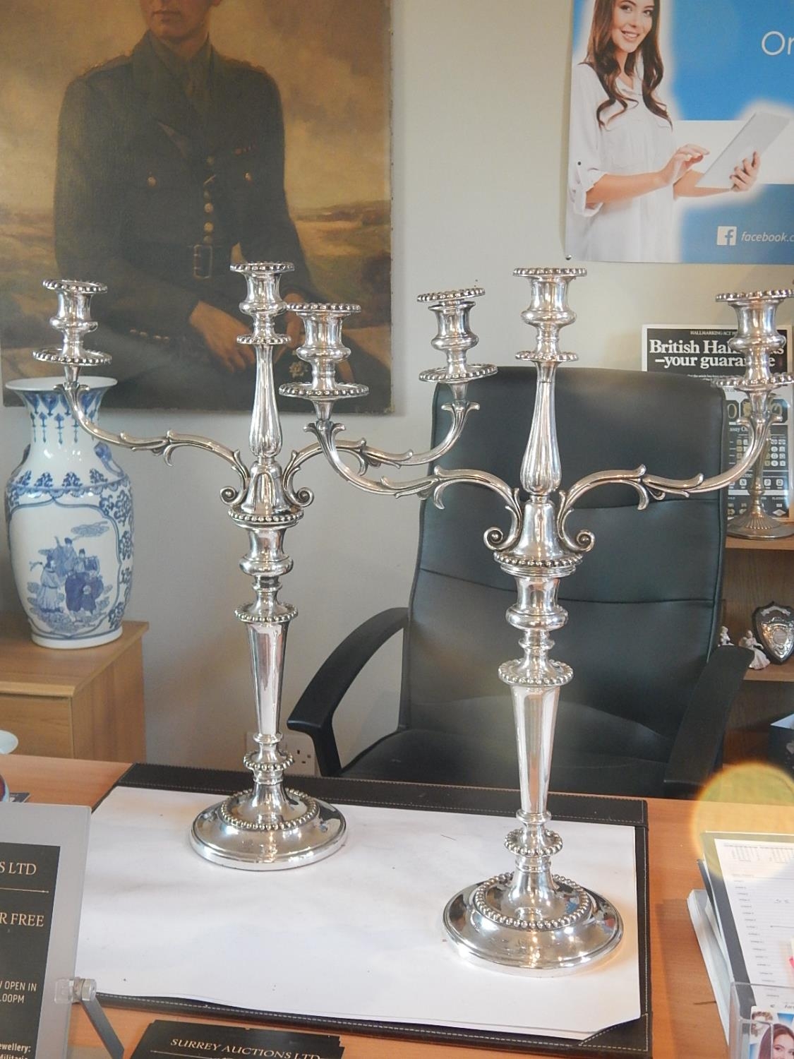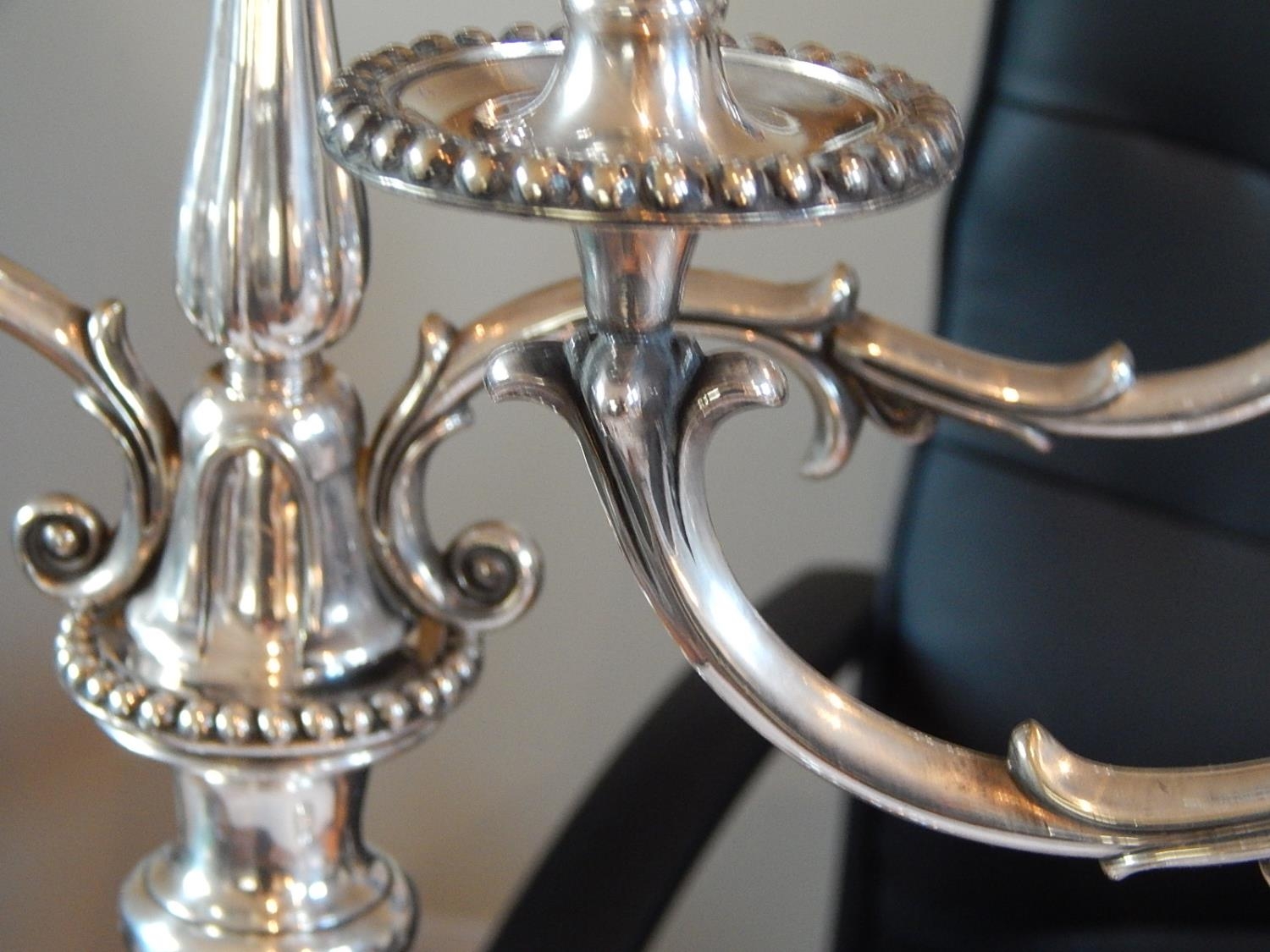 A Superb Pair of Sterling Silver Three Branch Candelabra, we...