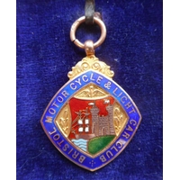 A 9ct gold and enamel medal for Bath & Bristol Inter-Club Trial: awarded to H Hicks, 1925, 11gms.