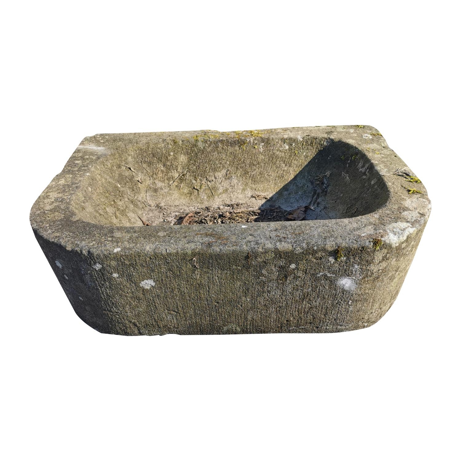 18th C. sandstone D-end trough {23 cm H x 76 cm W x 53 cm D}.