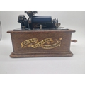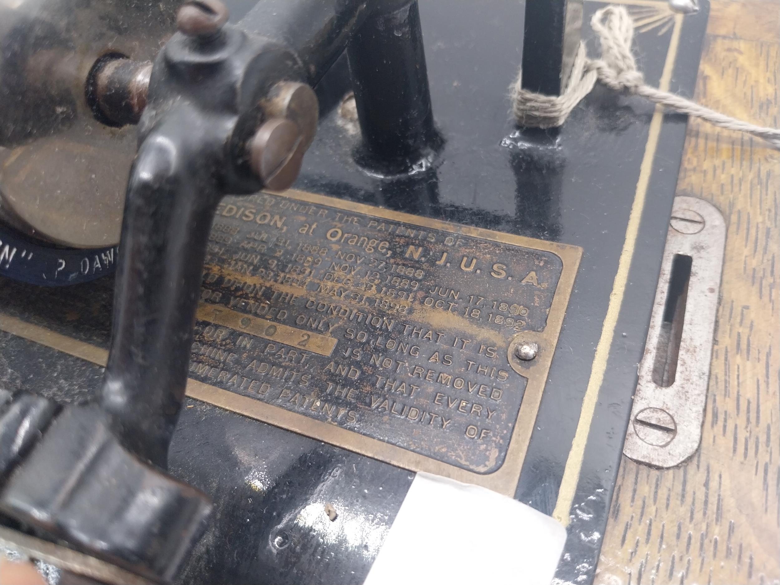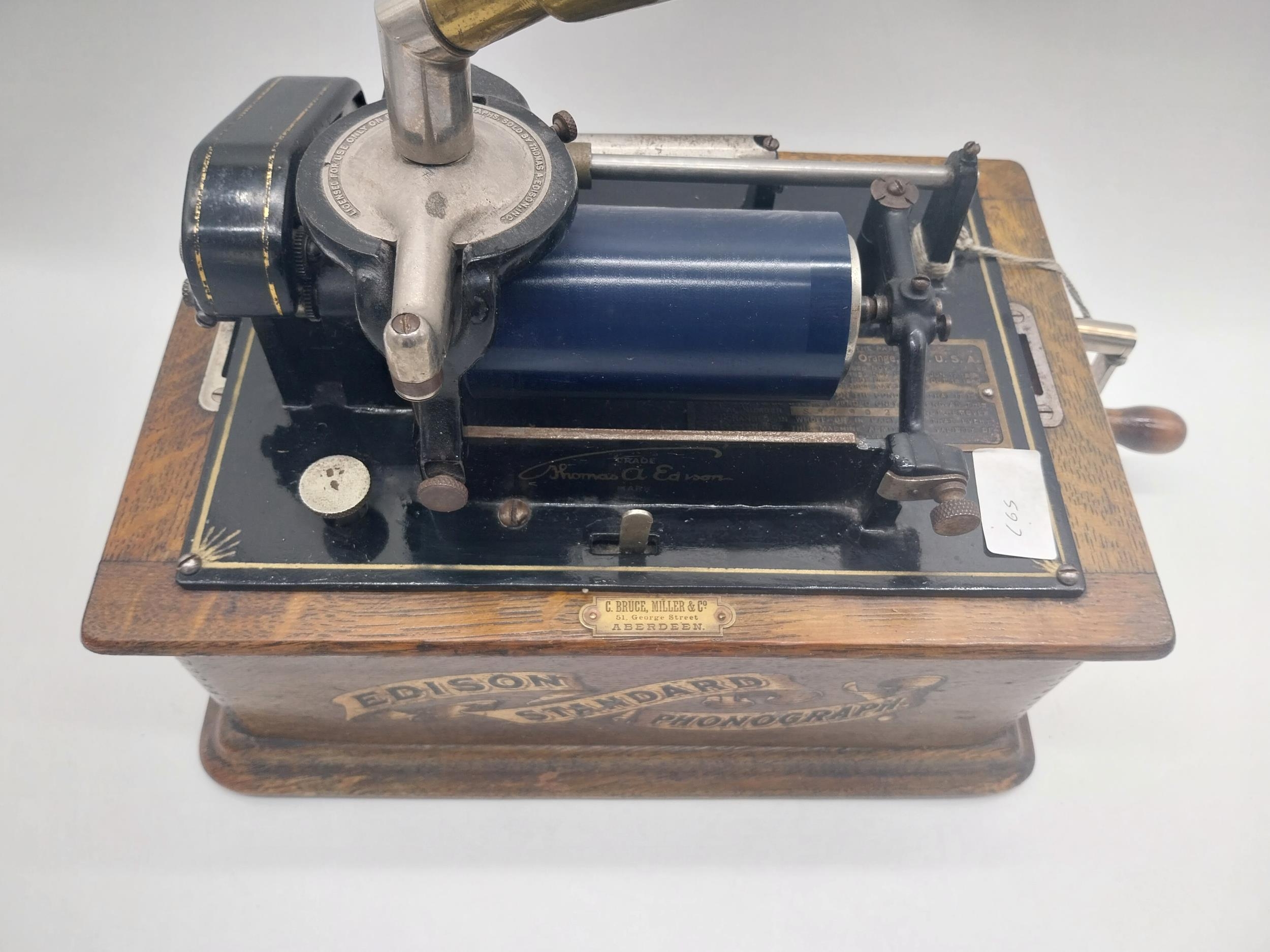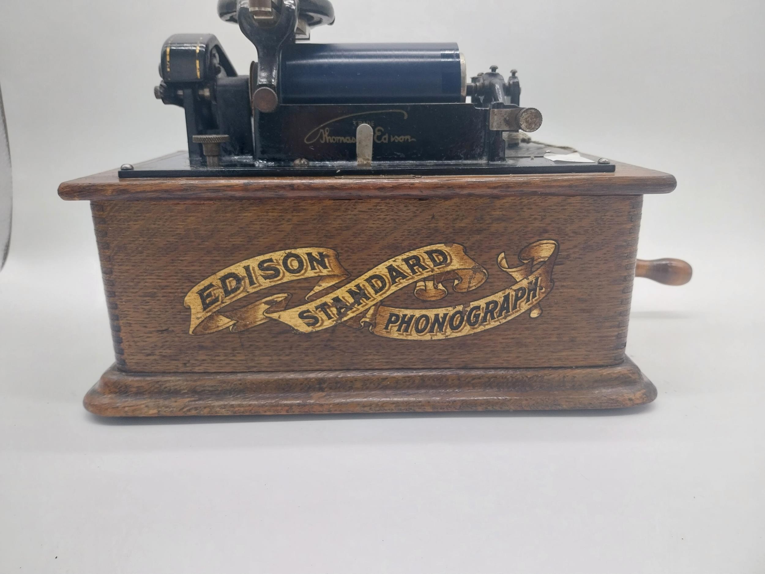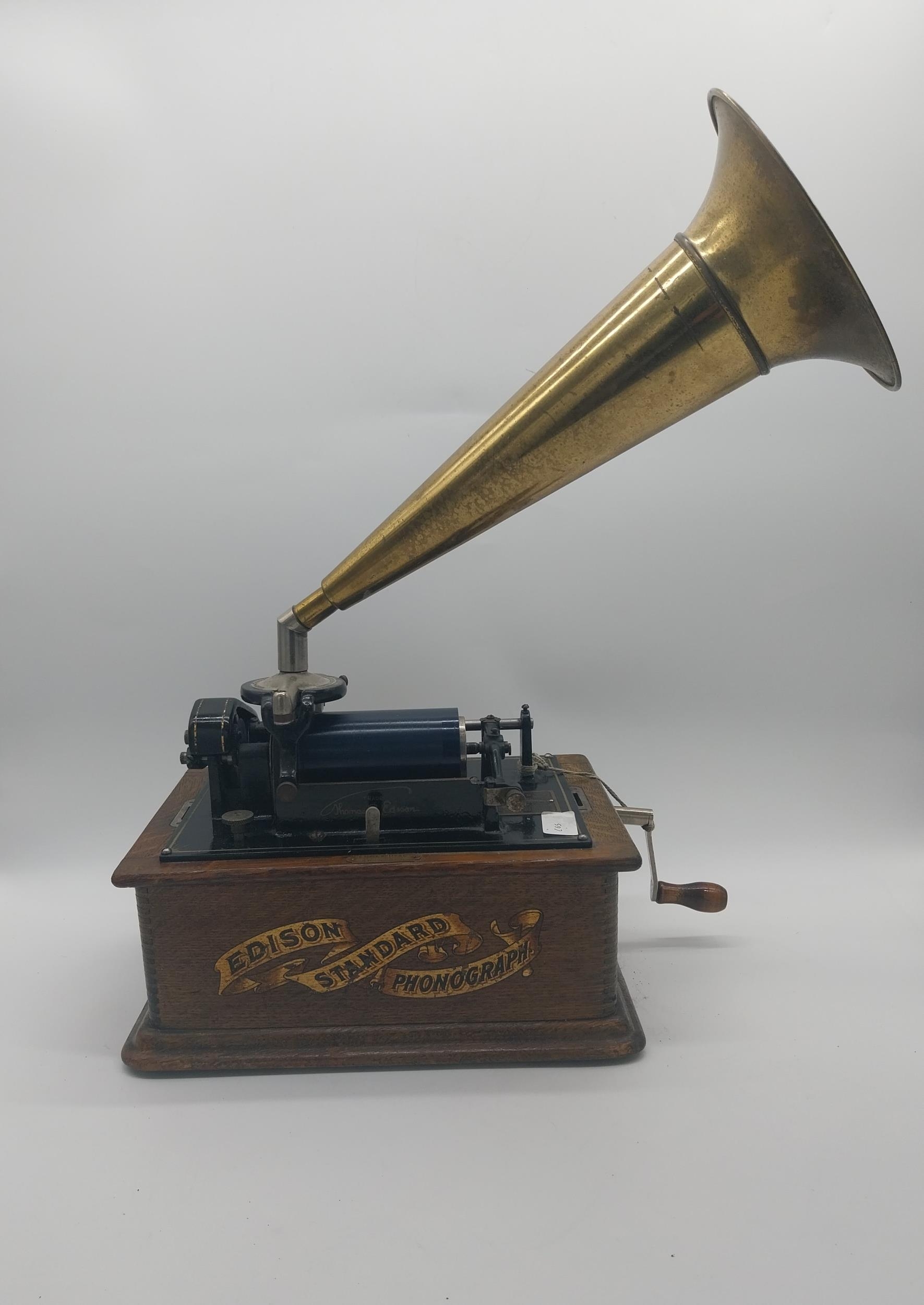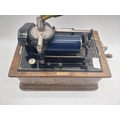 Early 20th C. Edison standard phonograph in oak case with brass horn {55 cm H x 43 cm W x 32 cm D}.