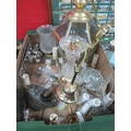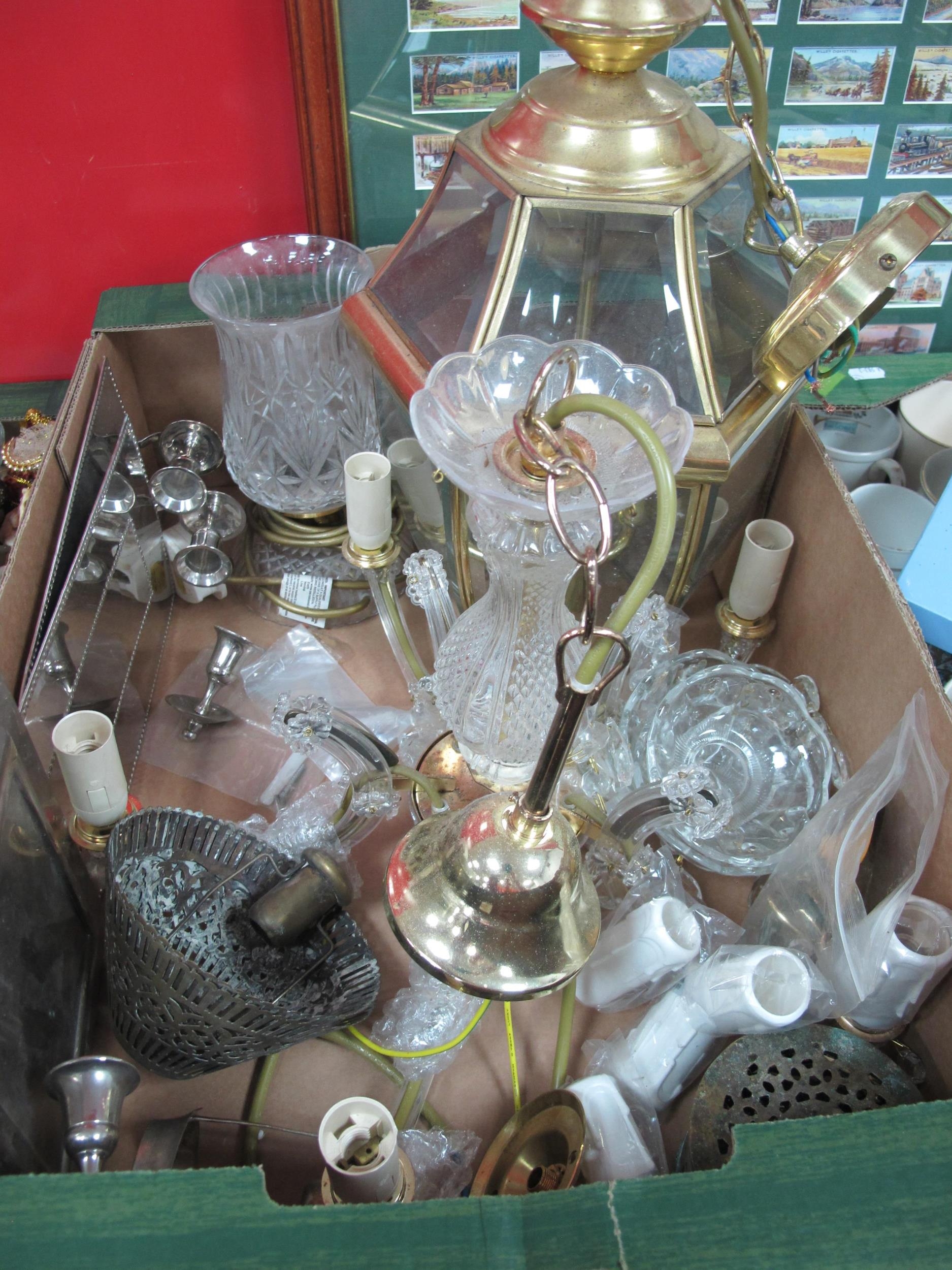 Brass Hexagonal Ceiling Light, five branch chandelier, wall candle holders, other lighting:- One Box.