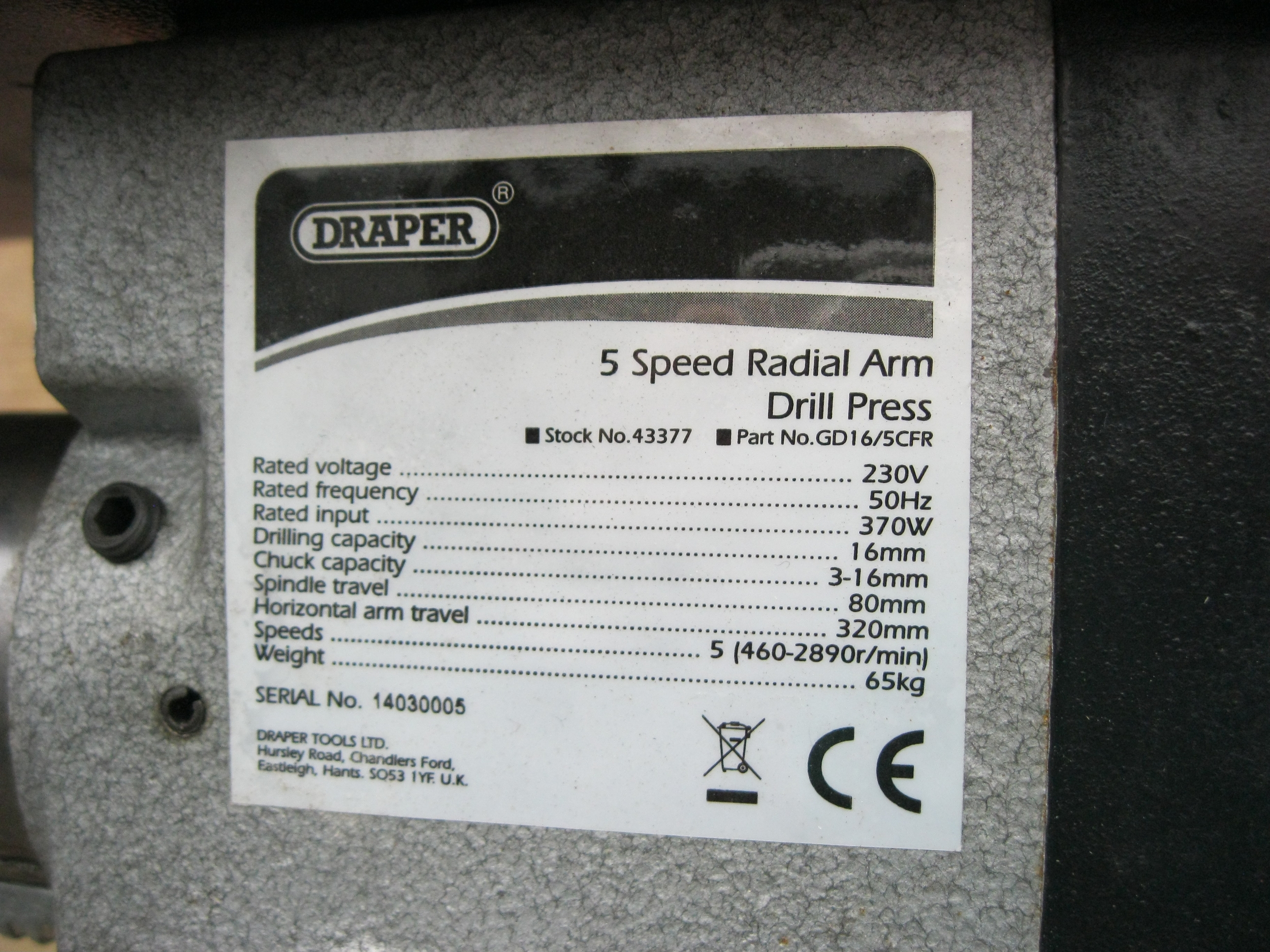 A Draper Radial Pillar Drill in excellent condition, very little use, complete and in working order