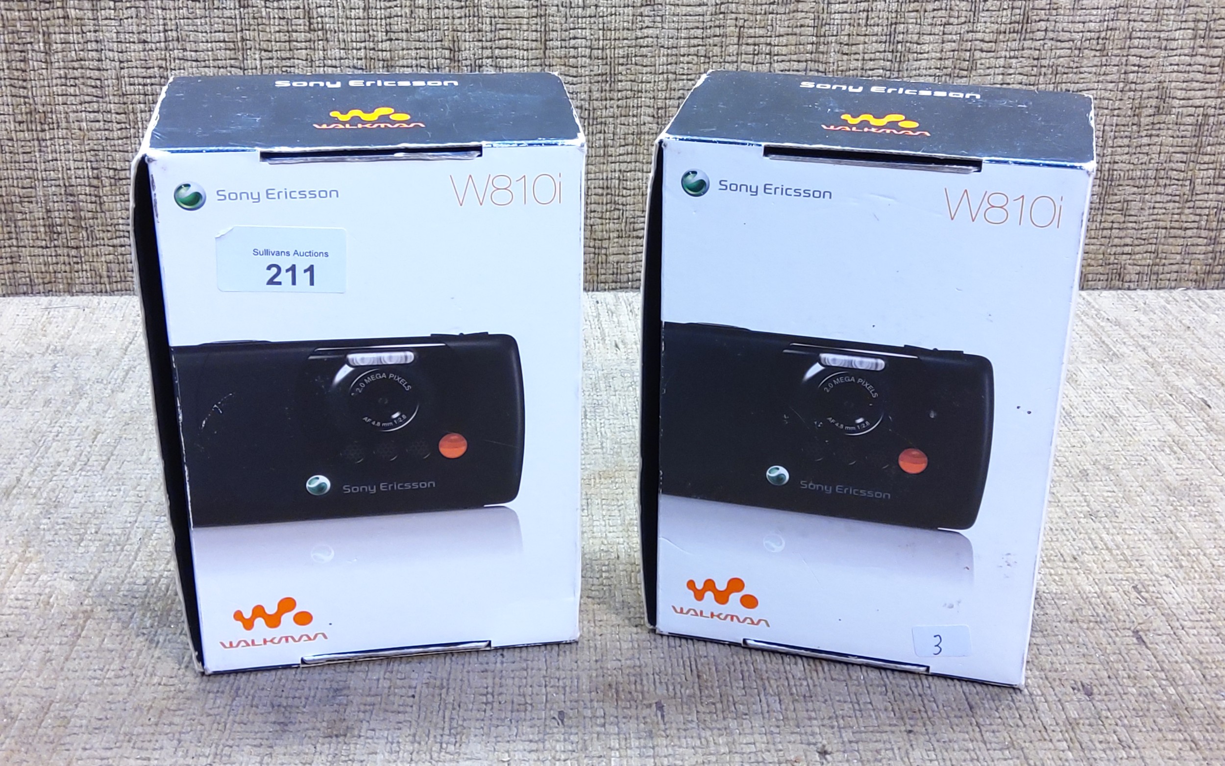Two Sony Ericsson W810I mobile phones boxed.