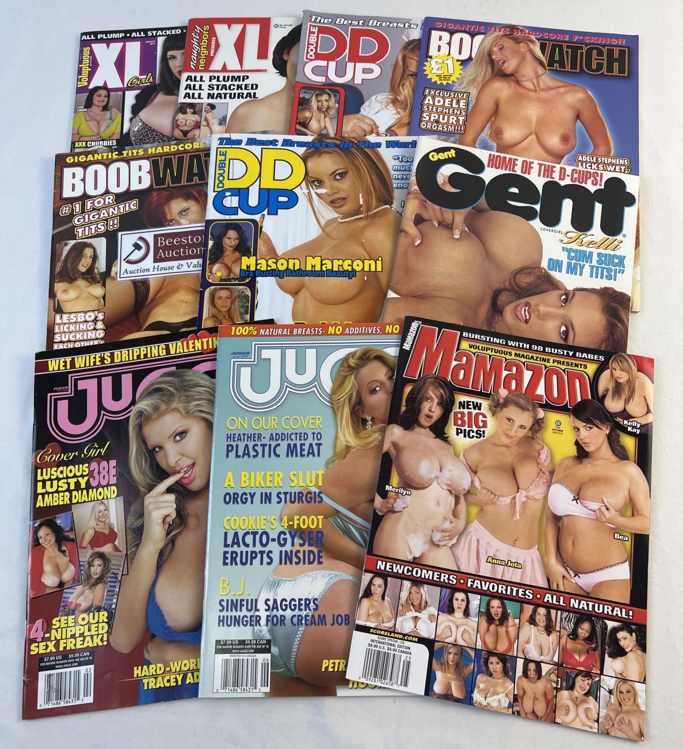 10 assorted adult erotic magazines featuring plus size and larger breasted models. To include Juggs, Mamazon, Boobwatch, DD Cup and Voluptuous XL Girls.
