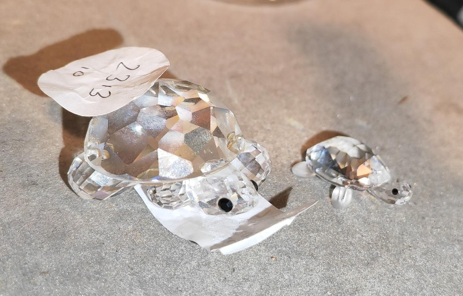 2 Swarovski Turtle/Tortoise Figurines One Leg Needs Regluing