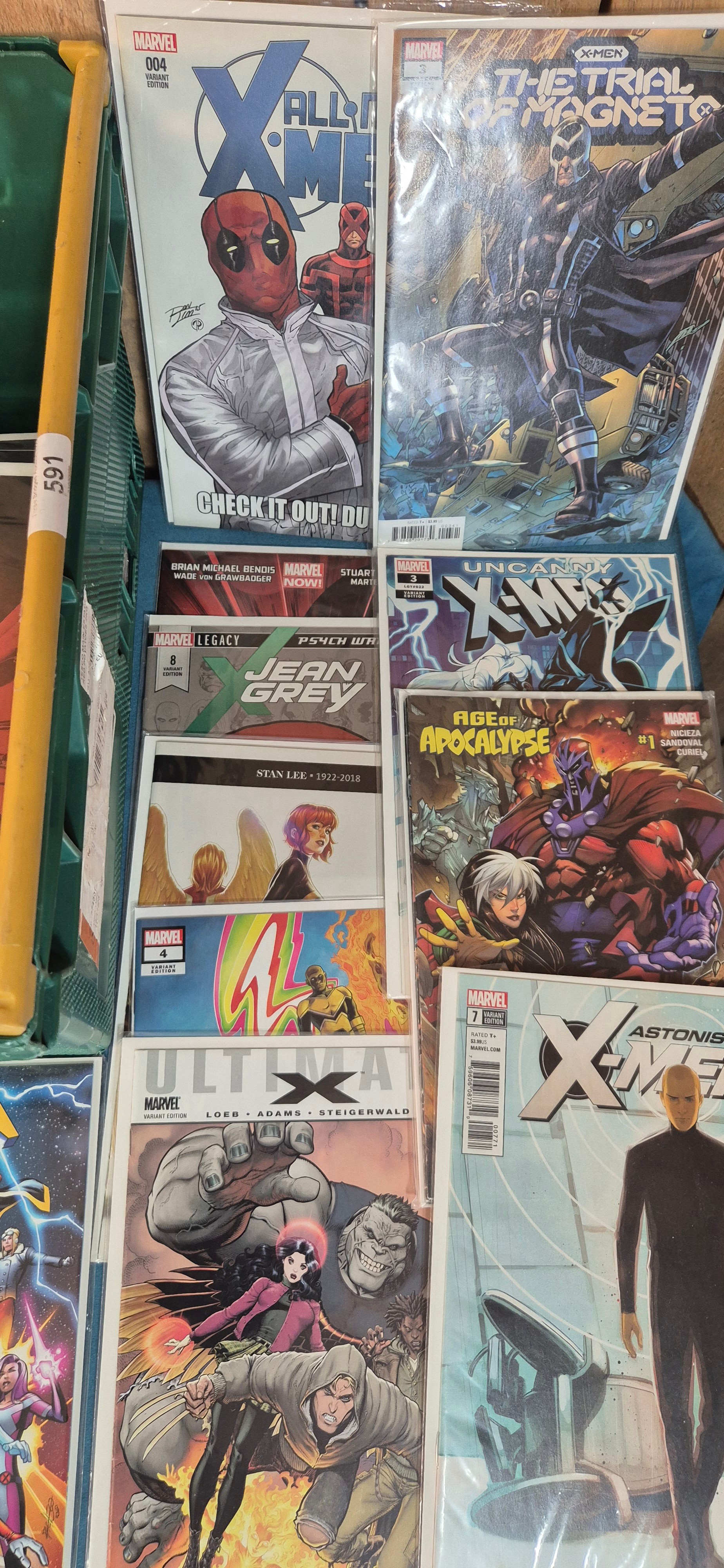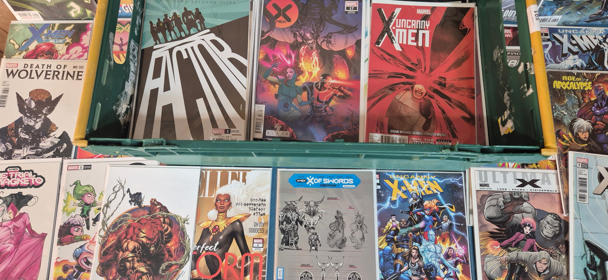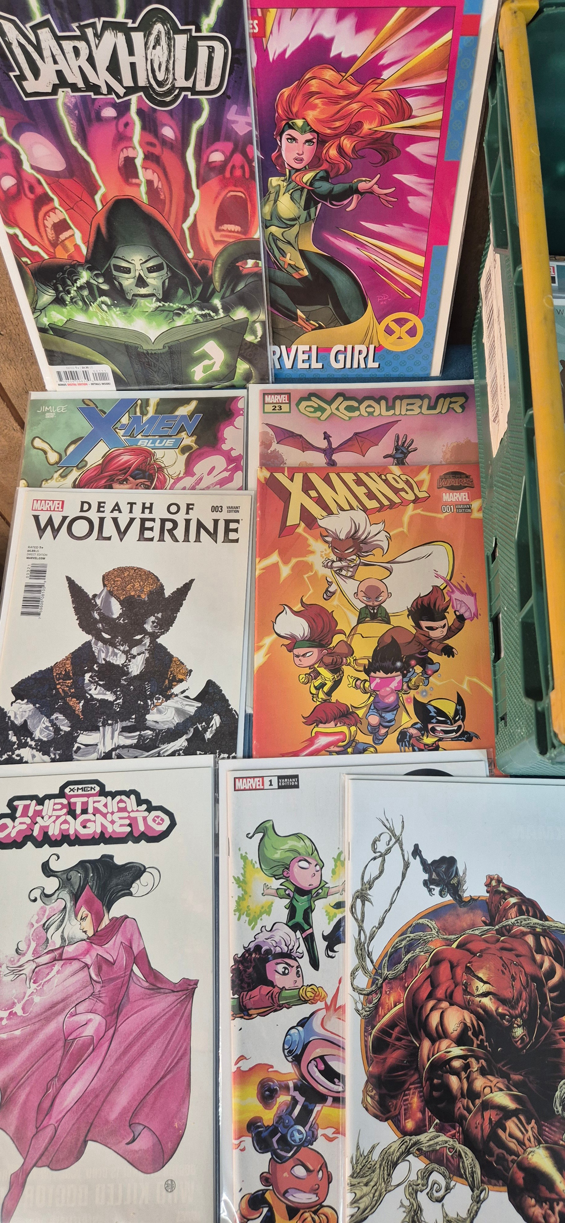 Crate of Marvel Comics; X-Men, Darkhold, Uncanny X-Men, Wolverine, All New X-Men, variant editions and #1 comics along with others.