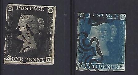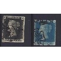 One 1840/1841 Penny Black and Two-penny Blue Postage Stamps. Both fine used