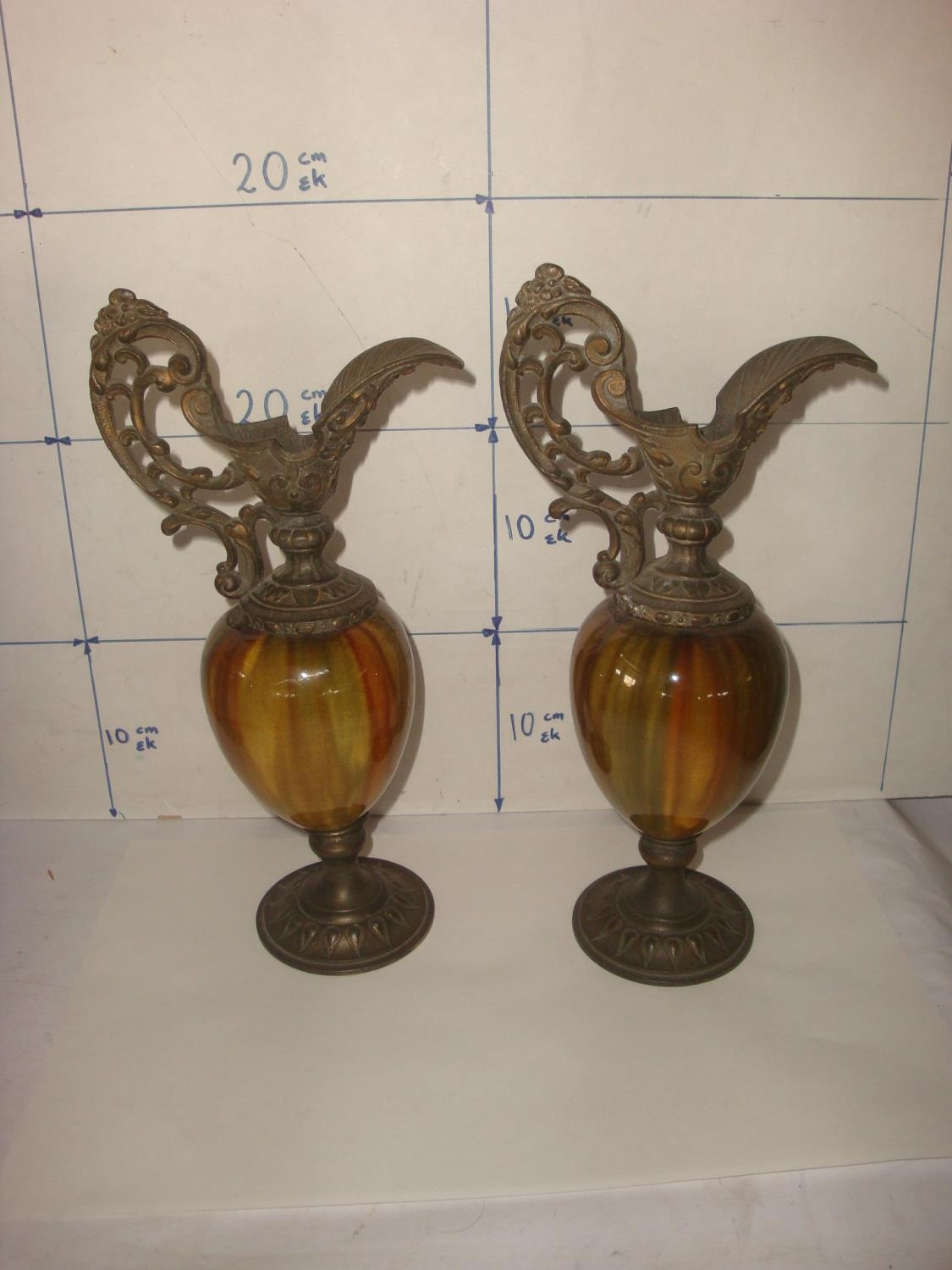 Pair of Antique/Vintage Metal & Porcelain Jugs