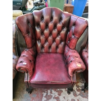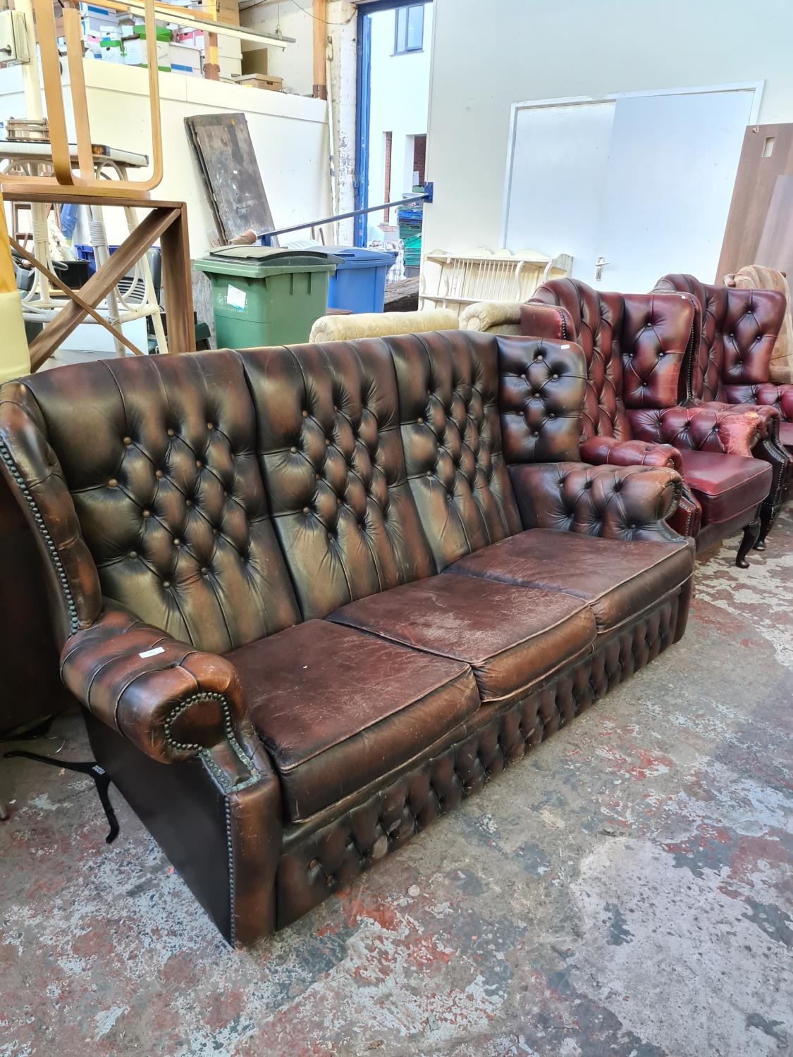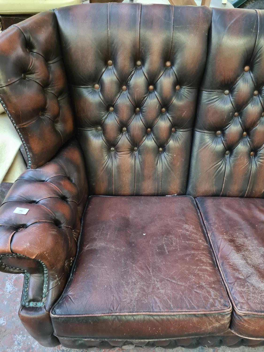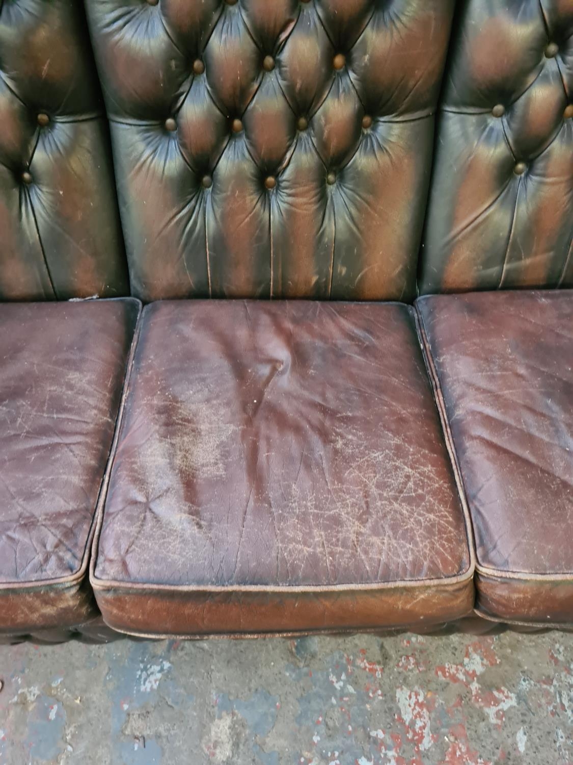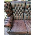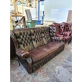 A vintage brown leather Chesterfield three seater sofa