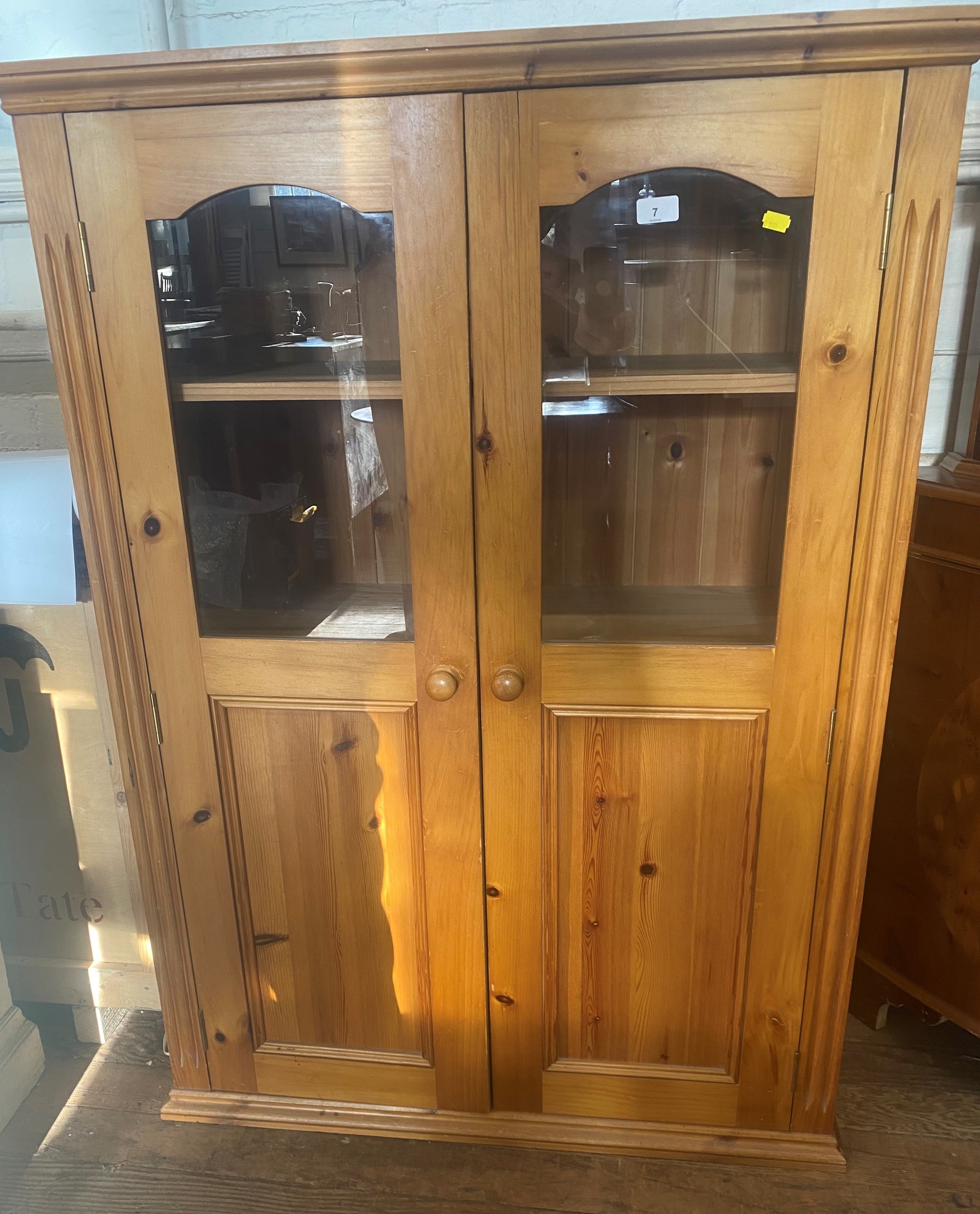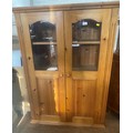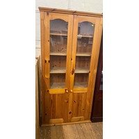 A Modern Pine Glazed Cupboard. The pair of doors enclosing three shelves. Fitted with a light. 127cm x 91cm x 35.5cm