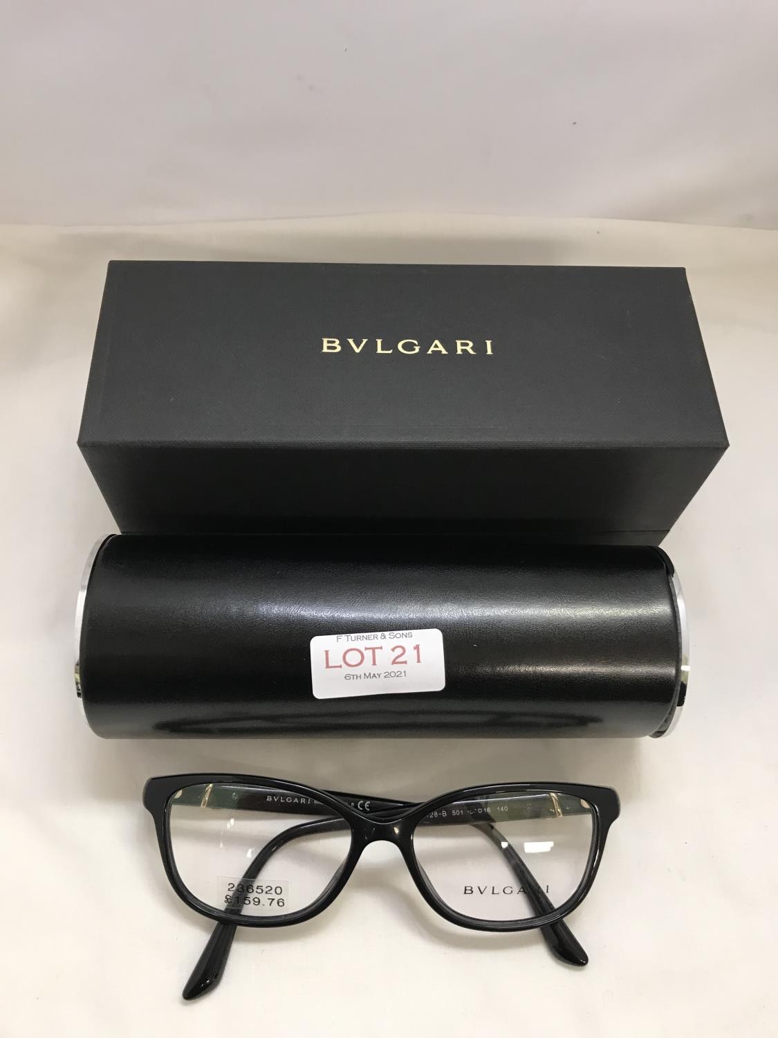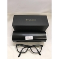 PAIR OF LADIES BVLGARI SPECTACLE FRAMES AND CASE (SOME LETTERS MISSING FROM ONE ARM)