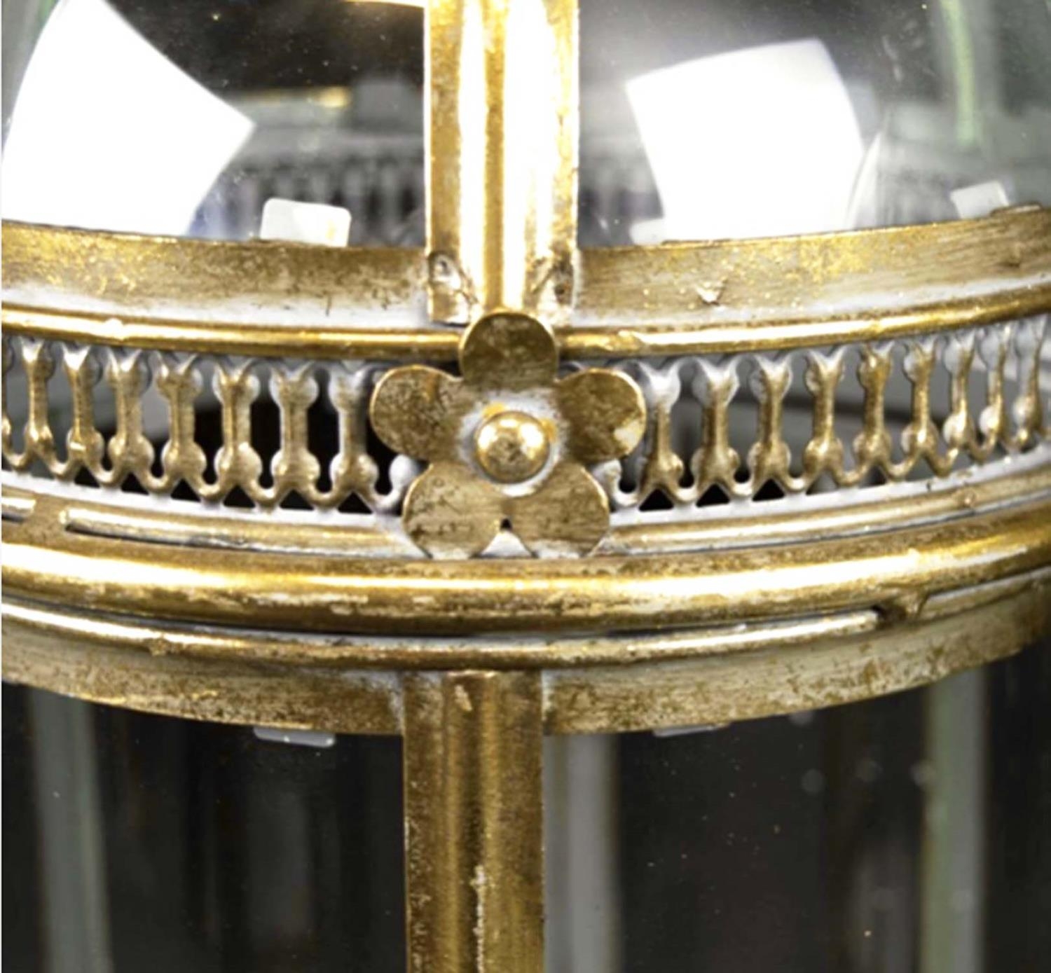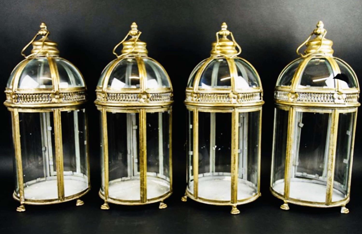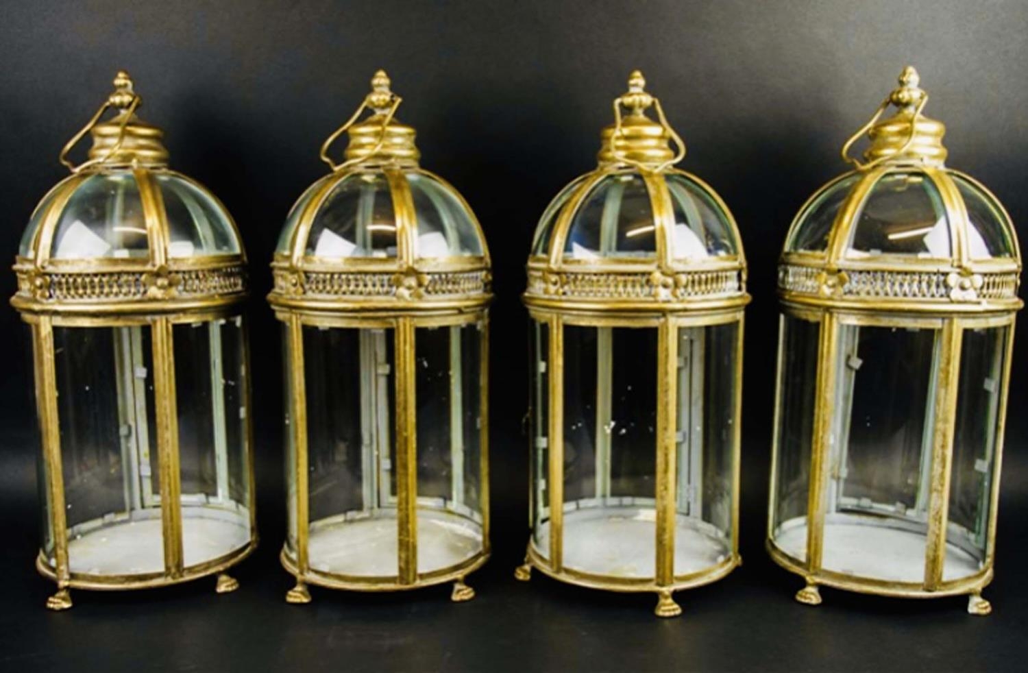 STORM LANTERNS, a set of four, gilt metal and glazed, Regency style, 46cm x 19cm x 19cm. (4)