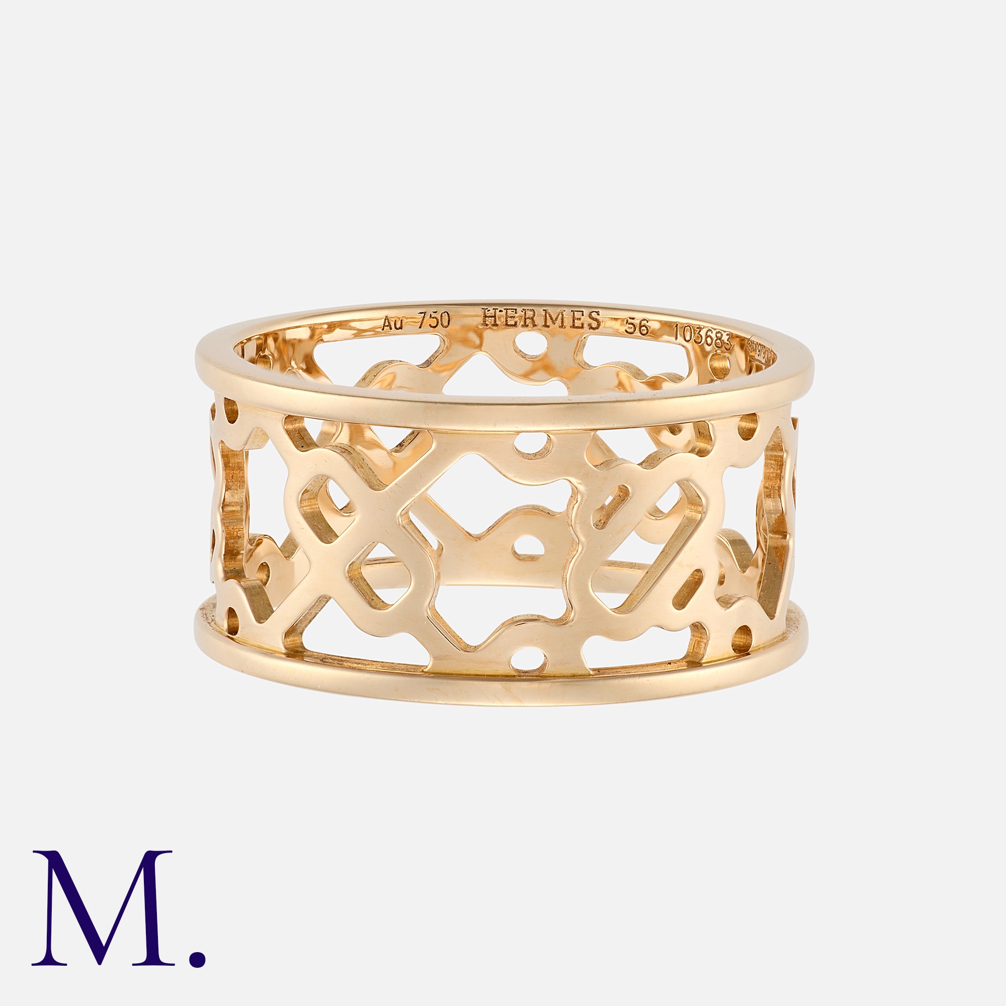 HERMÈS, A 'Chain D'ancre Passarelle' Ring in 18 carat rose gold, designed as a stylised openwork chain link band. Signed Hermès, Numbered, Size 56, Marked Au750.