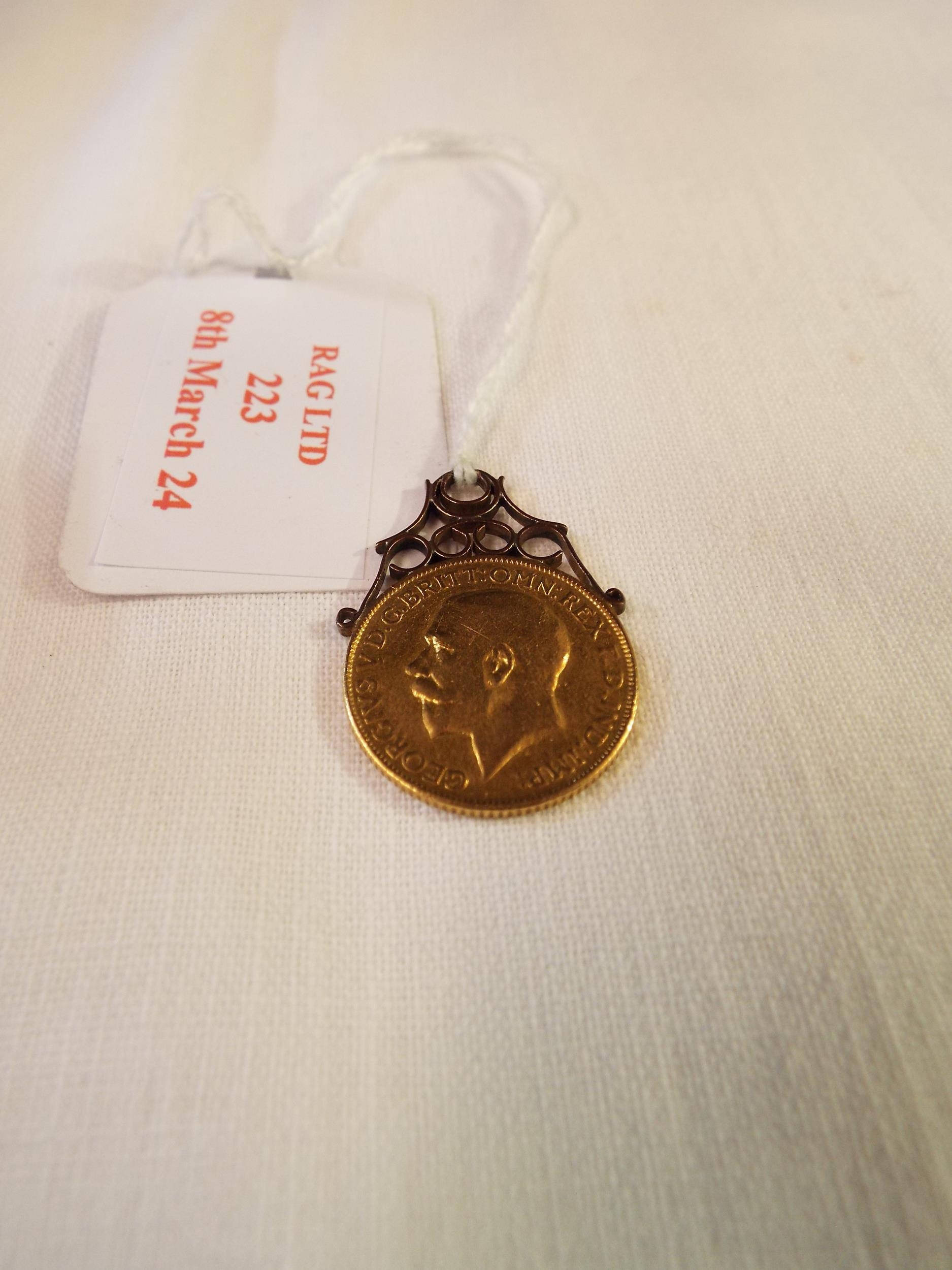 A 1913 gold sovereign with applied mount