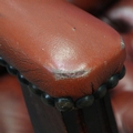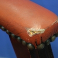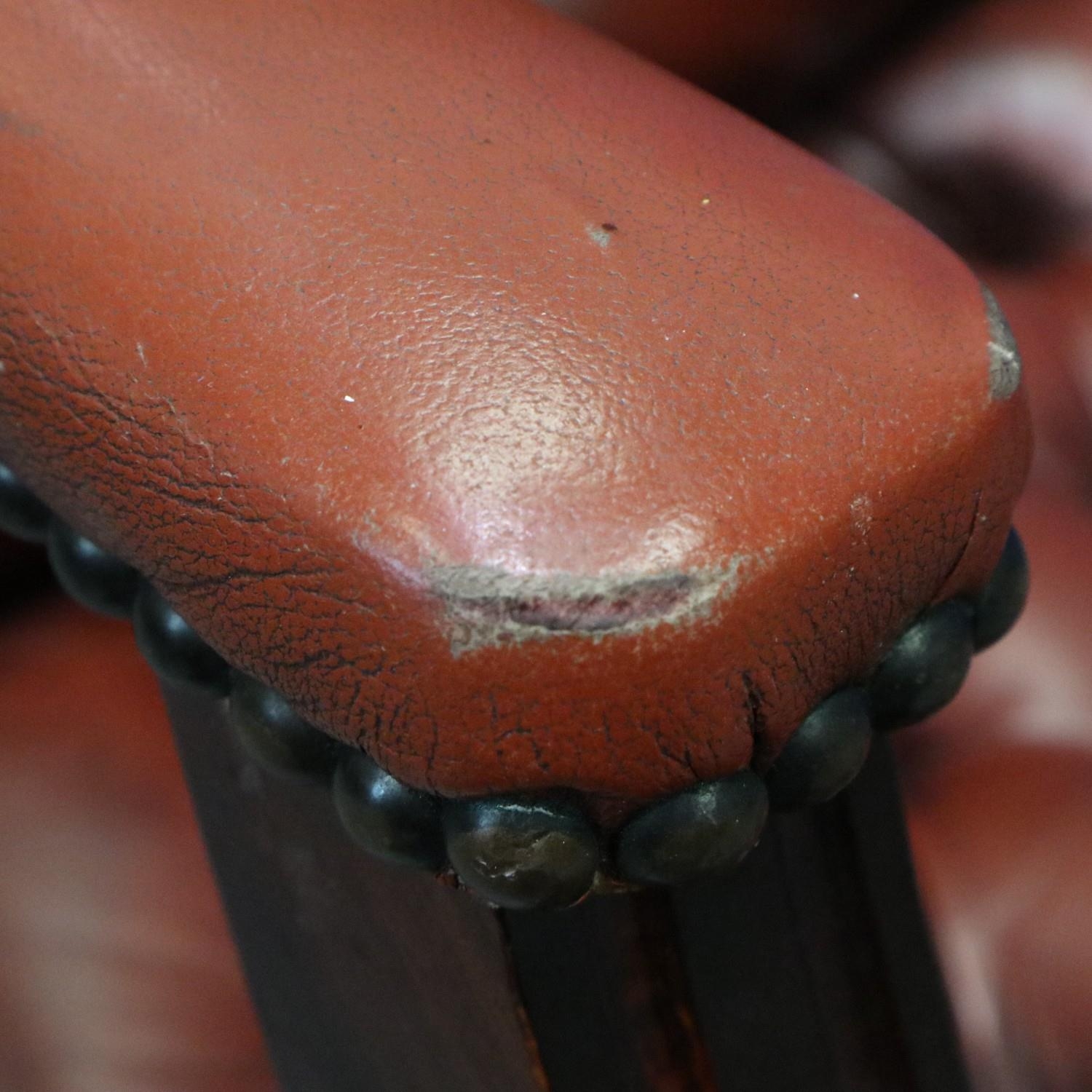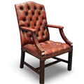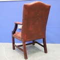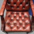 20th century Chesterfield style gentleman's elbow chair, upholstered in ox-blood red leather with buttoned backrest and seat. Not available for in-house P&P