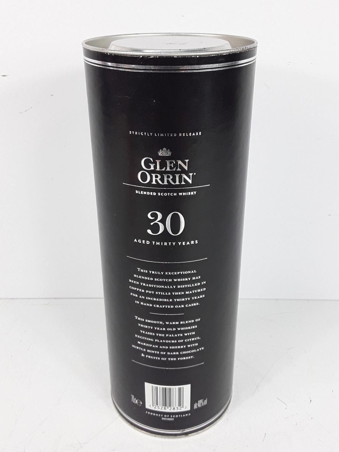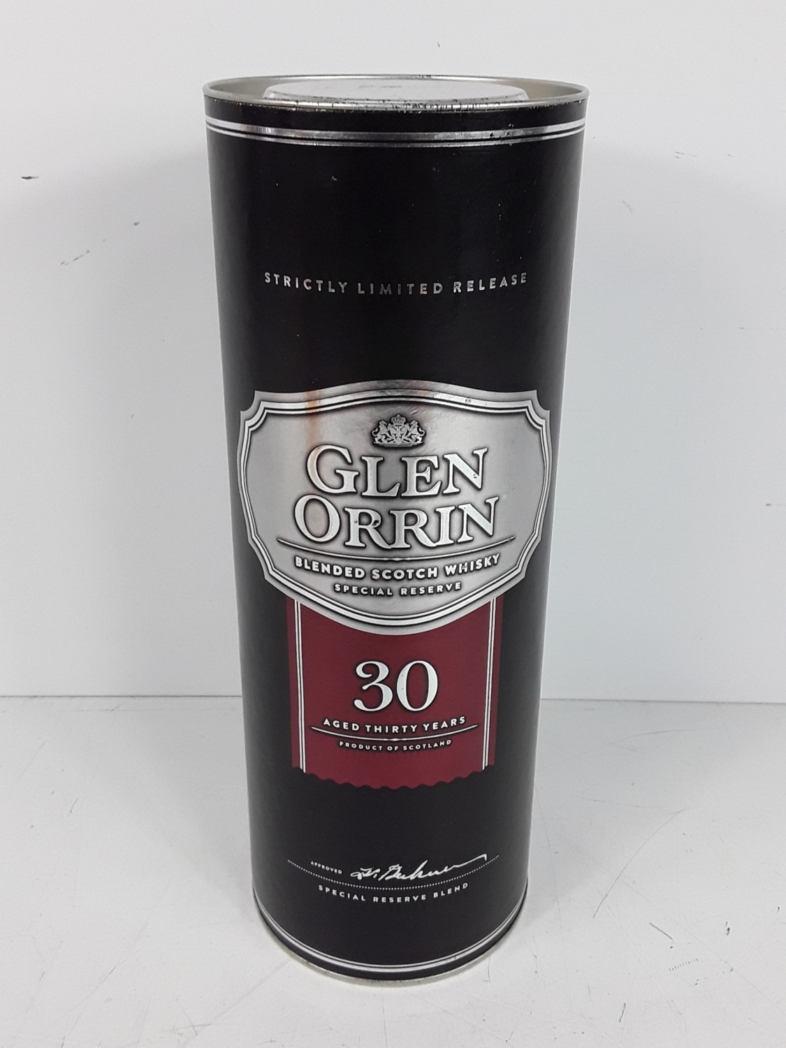 Tubed bottle of Glen Orrin Blended Scotch Whisky, aged 30 years, 70cl, 40%