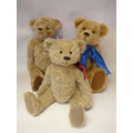 Three artist designed jointed mohair teddy bears, one by Sarah's Bears and another The English Teddy Bear Company, each with silk bow to neck (3, tallest 66cm)
