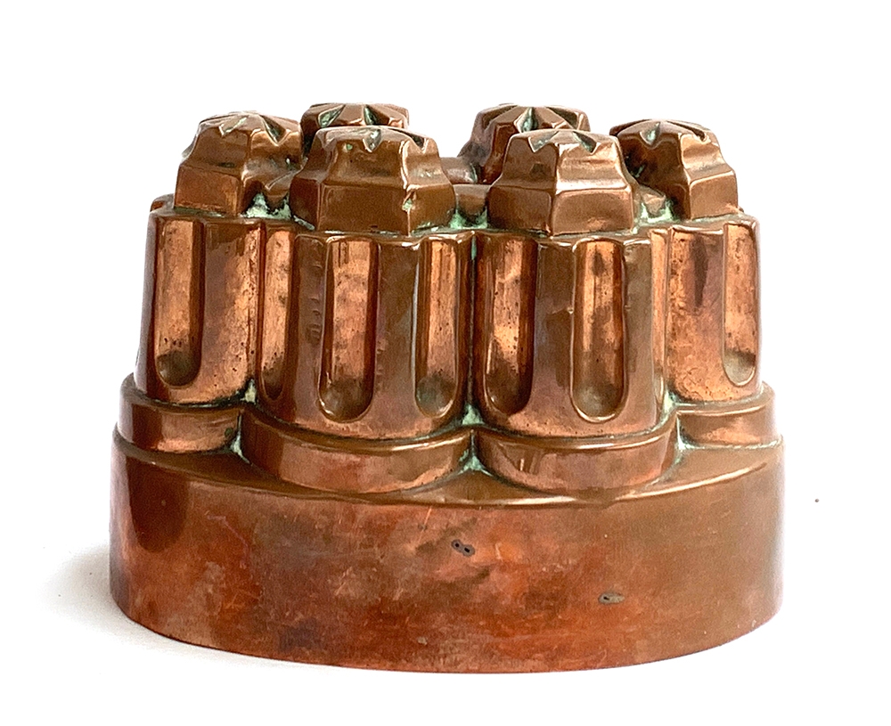 A Victorian Benham & Froud copper jelly mould, of fluted turret form, shape no. 486, 15cmL
