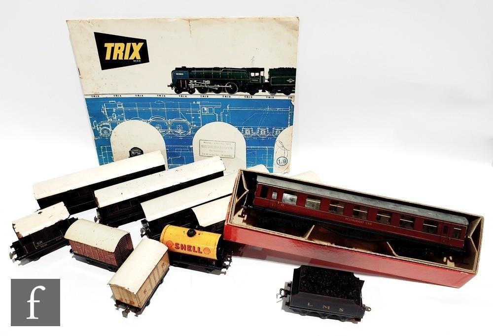 A collection of Trix Twin Railway, to include three locomotives, 235 4-4-0 BR black 52750, missing front bogey, an F103 0-6-2T BR black 6664 and a Bo-Bo BR green Warship Diesel 'Vangaurd', also ten assorted coaches, rolling stock, a large quantity of track, etc., some boxed, playworn.