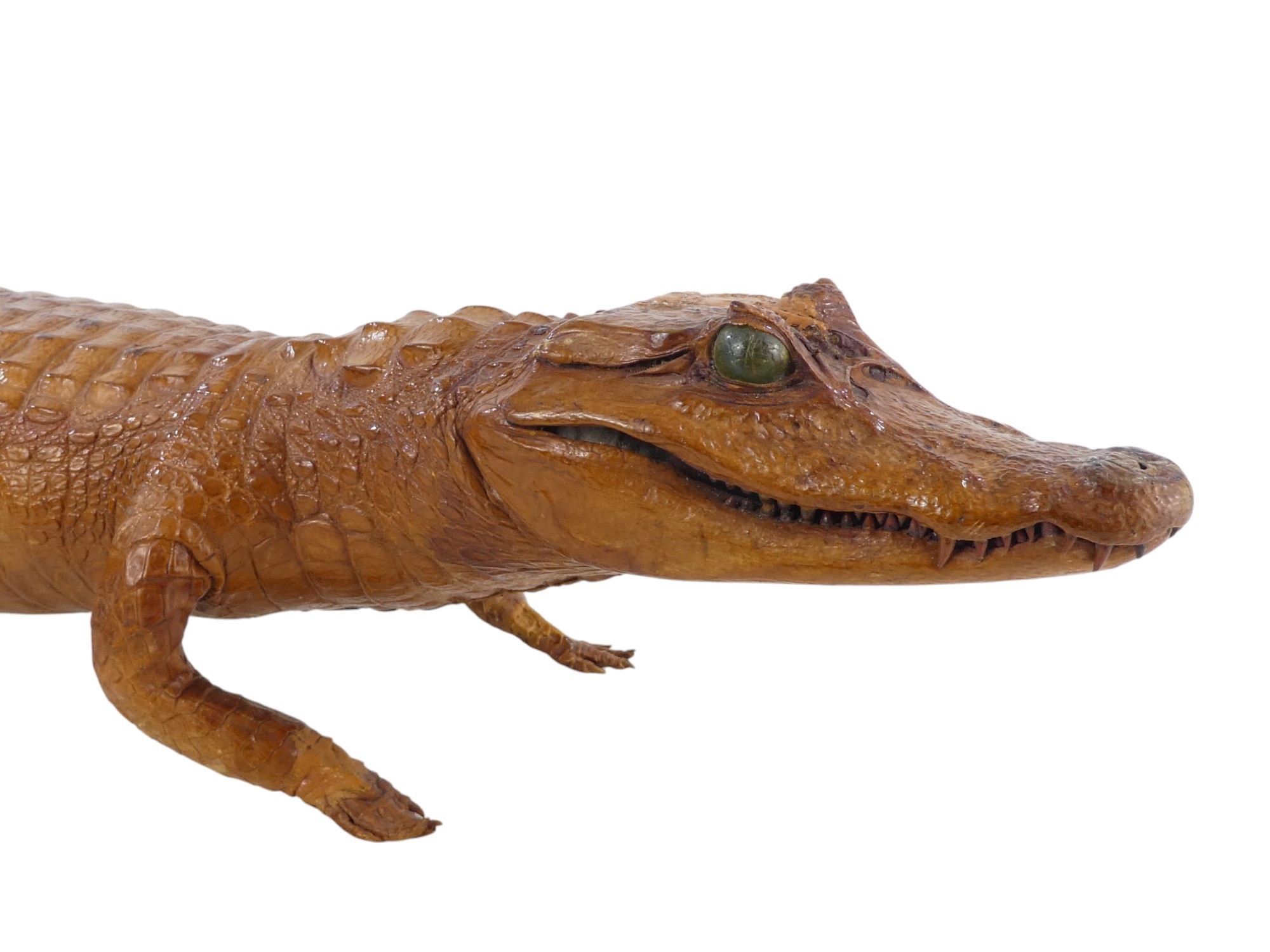 A 20th century taxidermy crocodile - of small proportions, possibly a Spectacled Caiman, 115cm long.