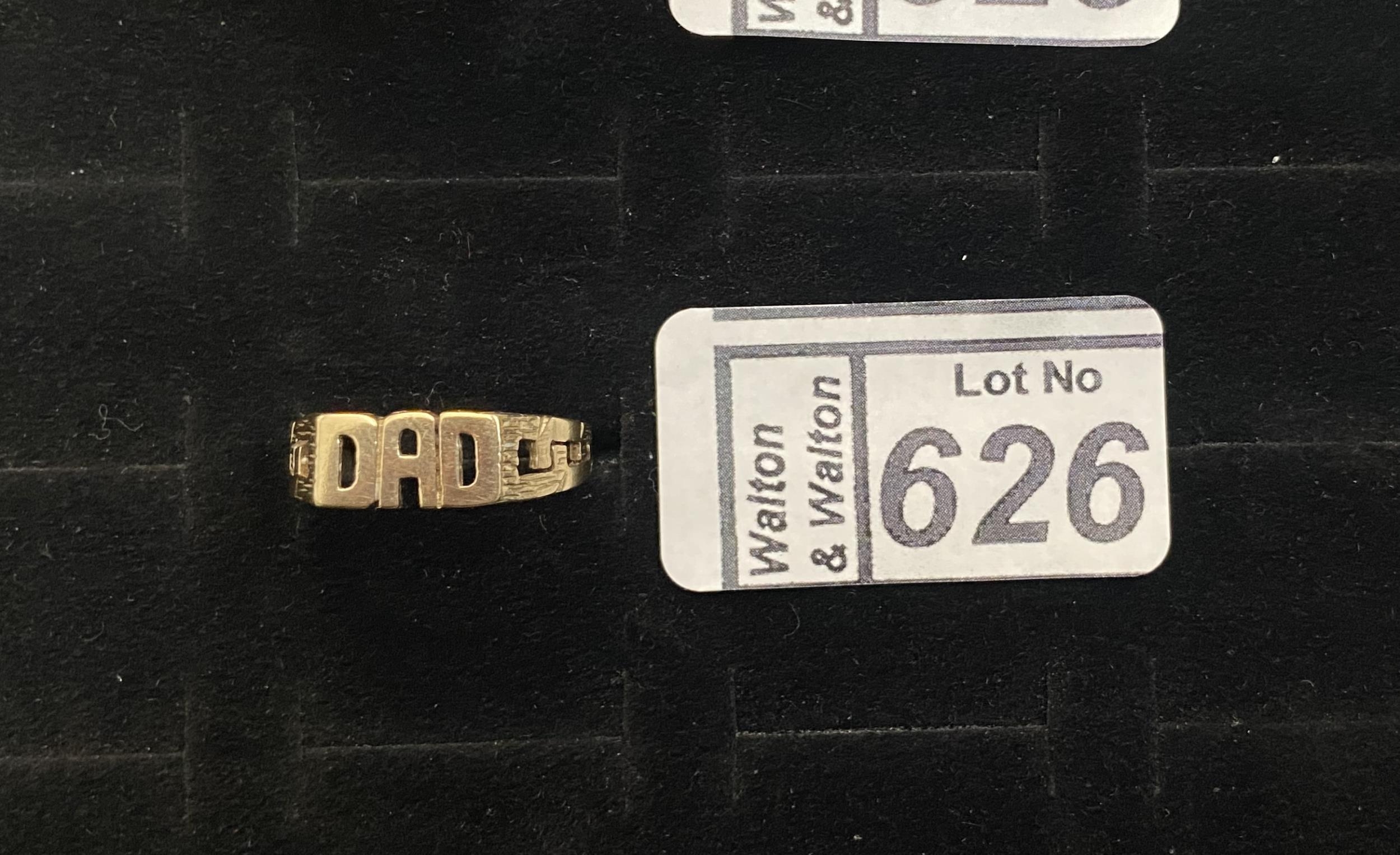 9ct Gold 'Dad' ring, size S 1/2 , 2.7g - Only 10% buyer's premium