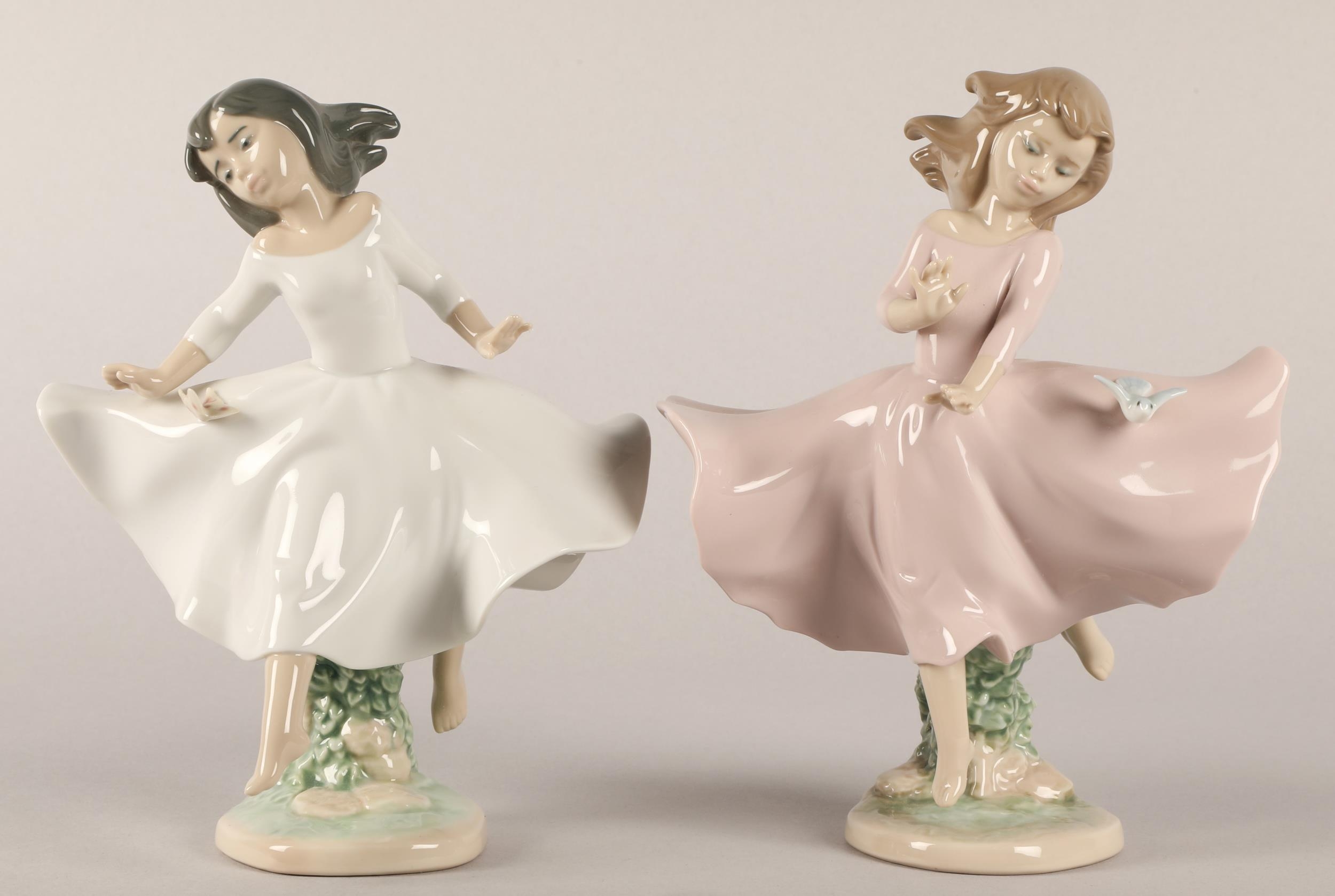 Two Lladro figurines, girl with butterfly and girl with bird (2)