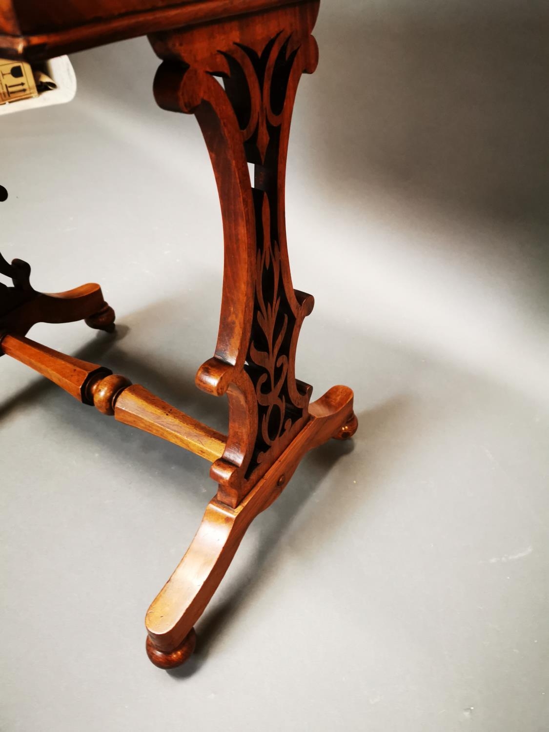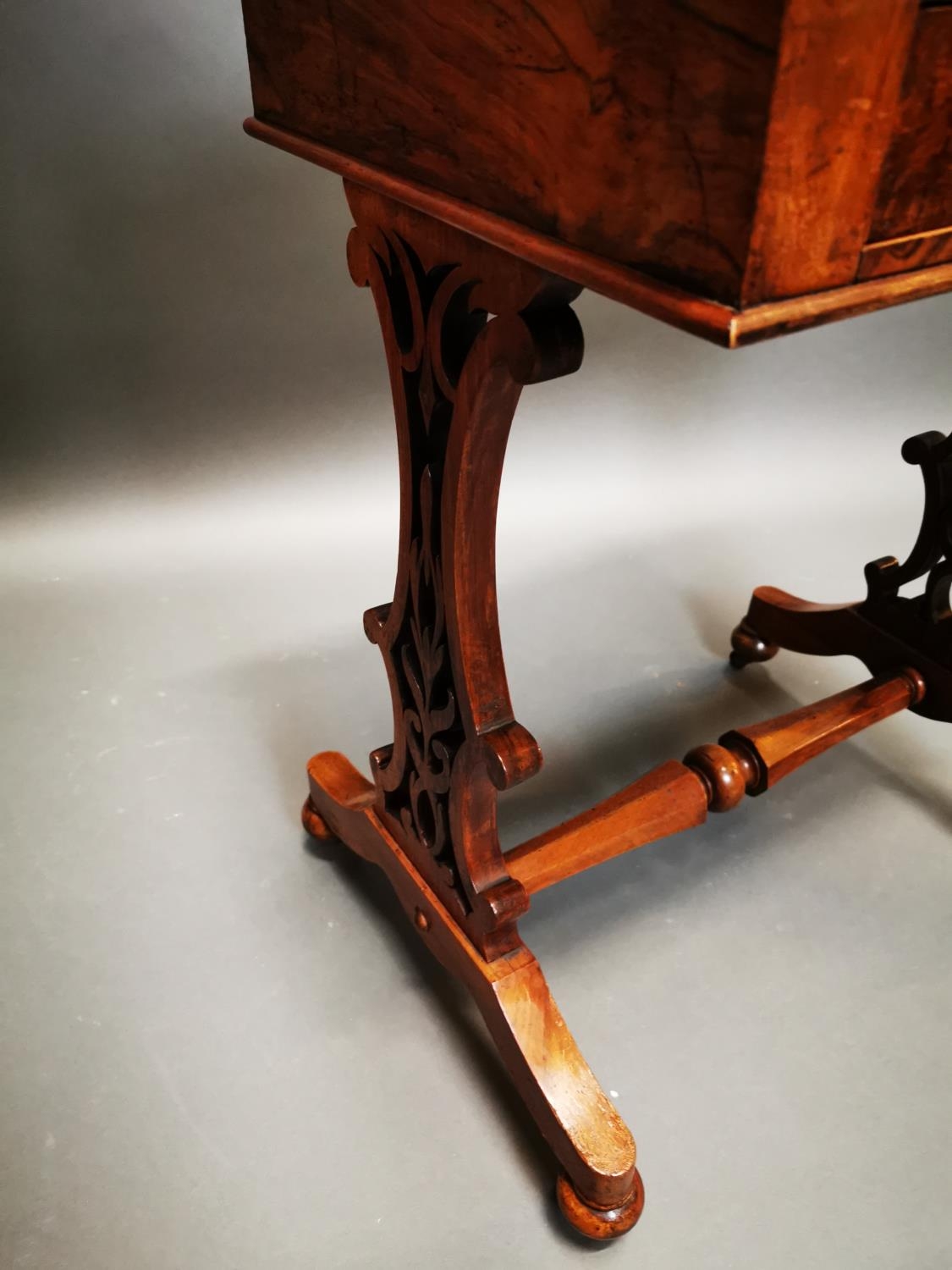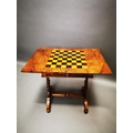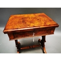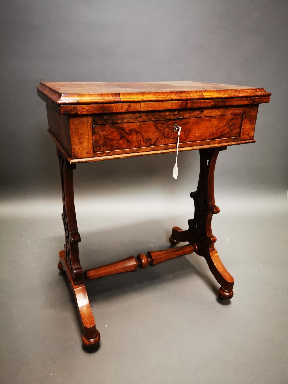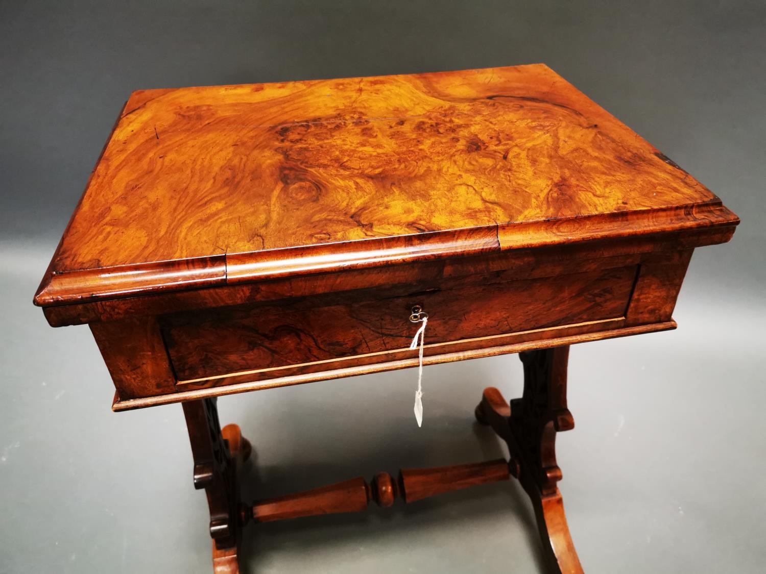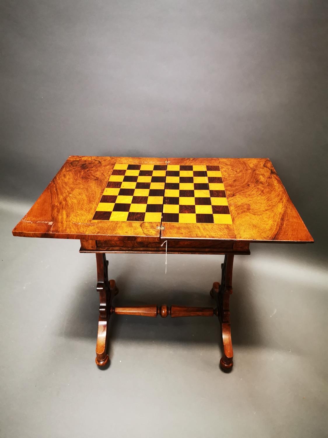 Good quality 19th C. burr walnut folding games table with single drawer in the frieze on lyre supports and single stretcher {76 cm H x 56 cm W x 41 cm D}.