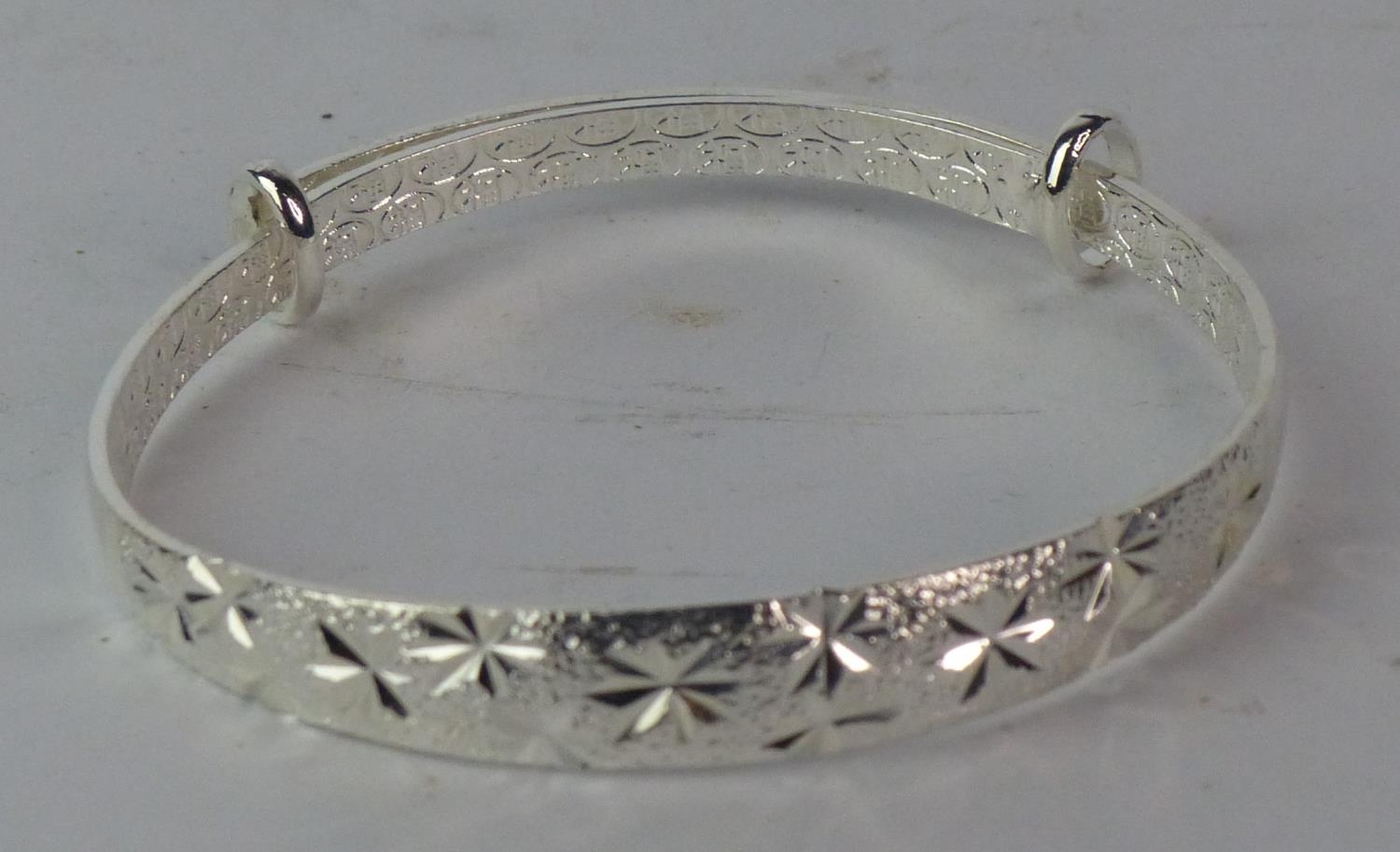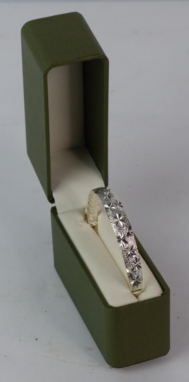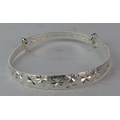An engraved silver bangle, stamped S990.