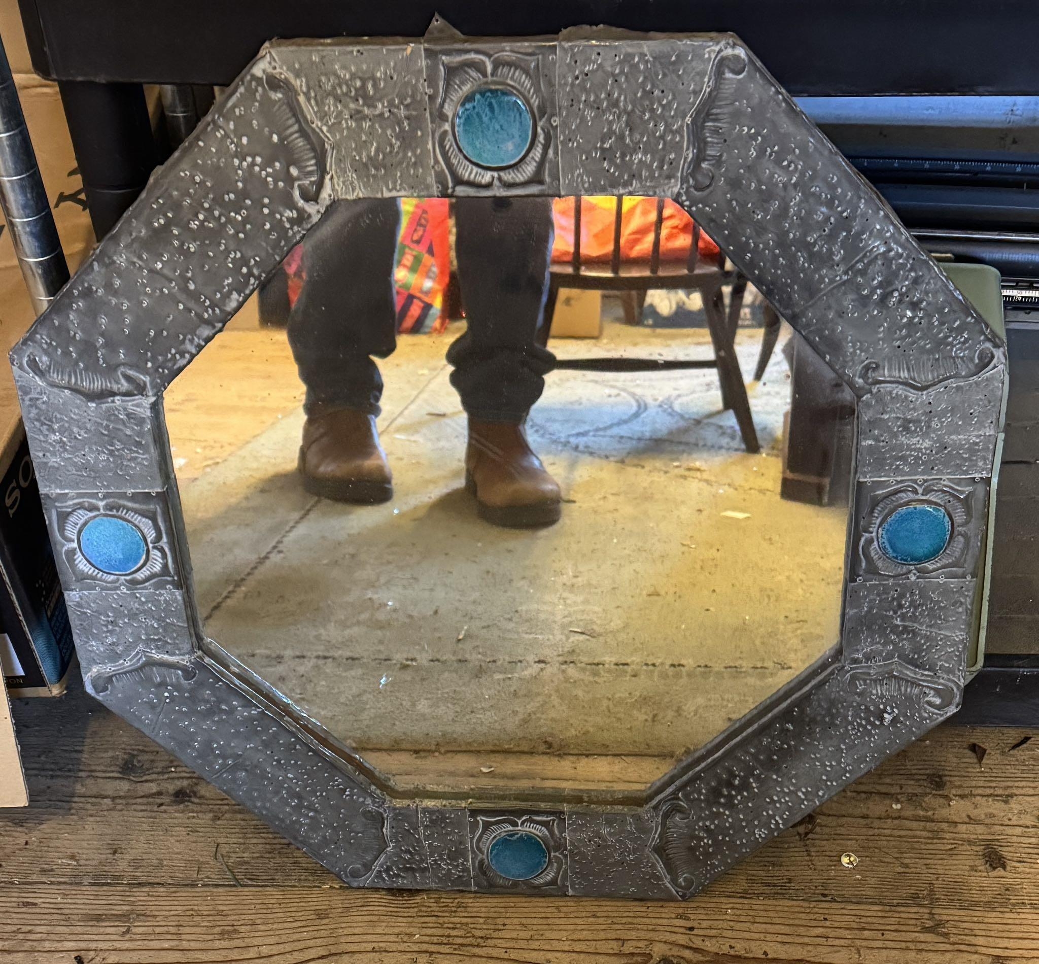 Arts & Crafts pewter decorated mirror