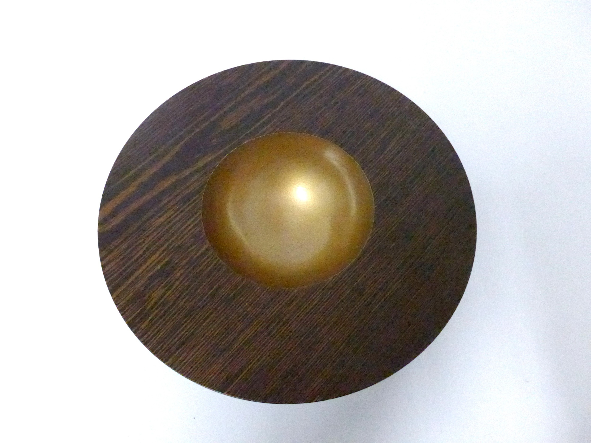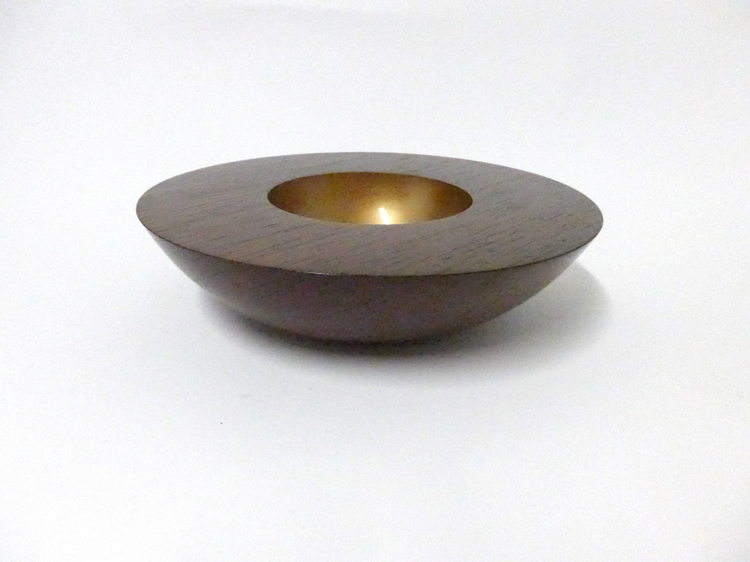 TOM KITTLE (XX/XXI) A turned wooden bowl with gold coloured interior. 7cm high x 27.5cm diameter
