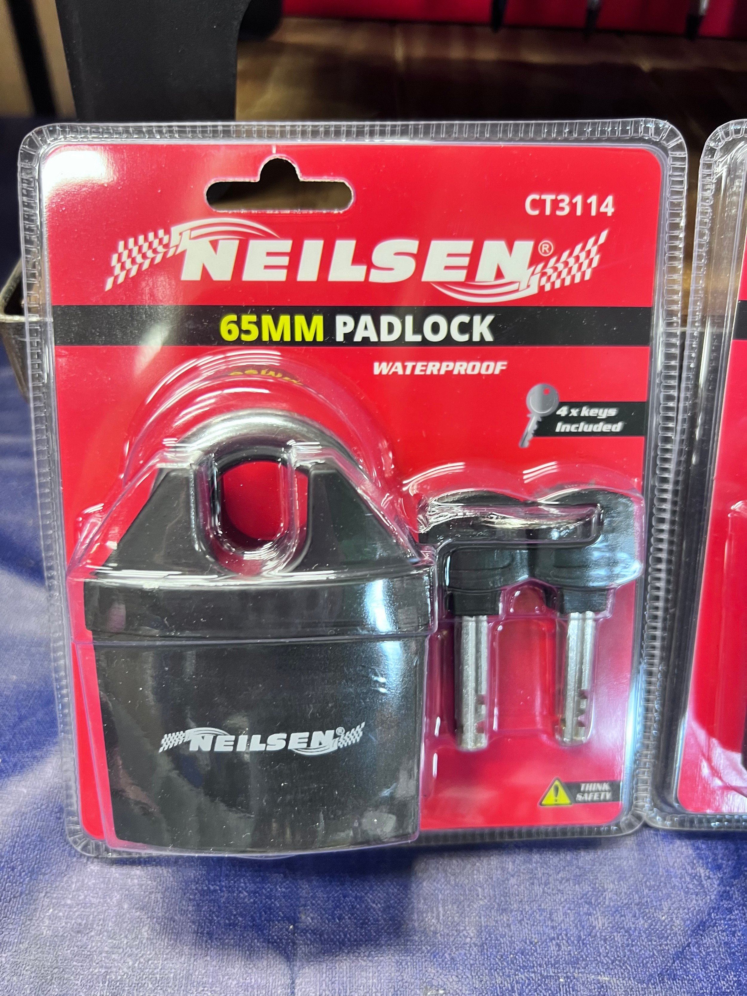 NEW NEILSEN 65mm WATERPROOF PADLOCK WITH 4 KEYS - CT3114