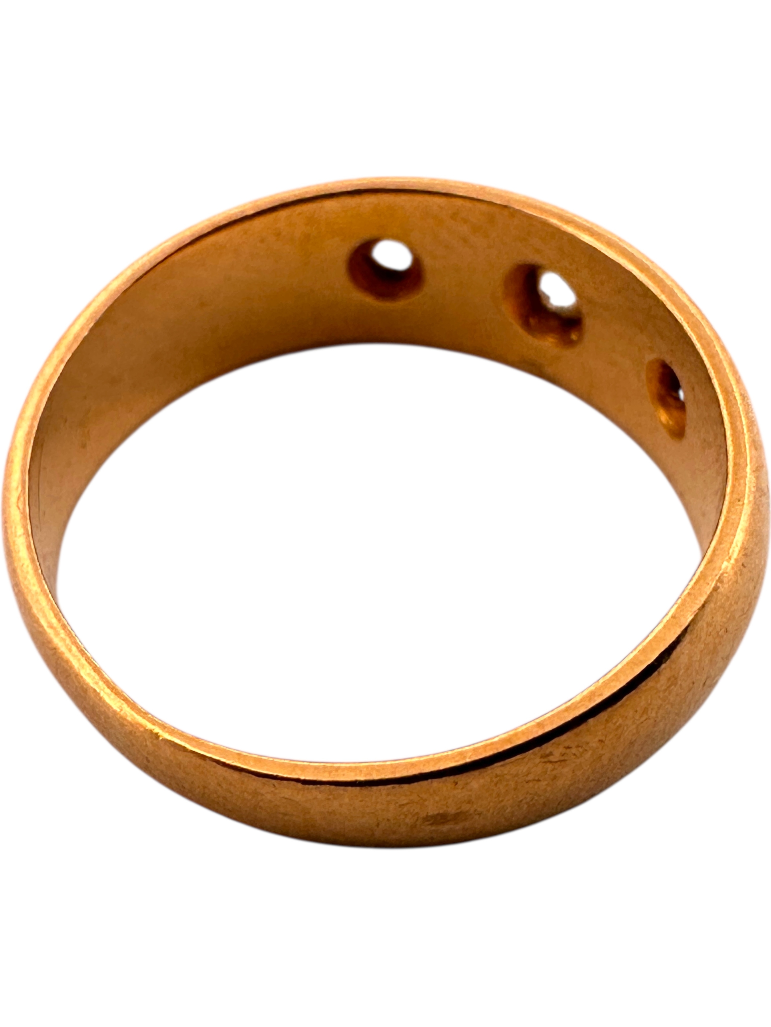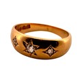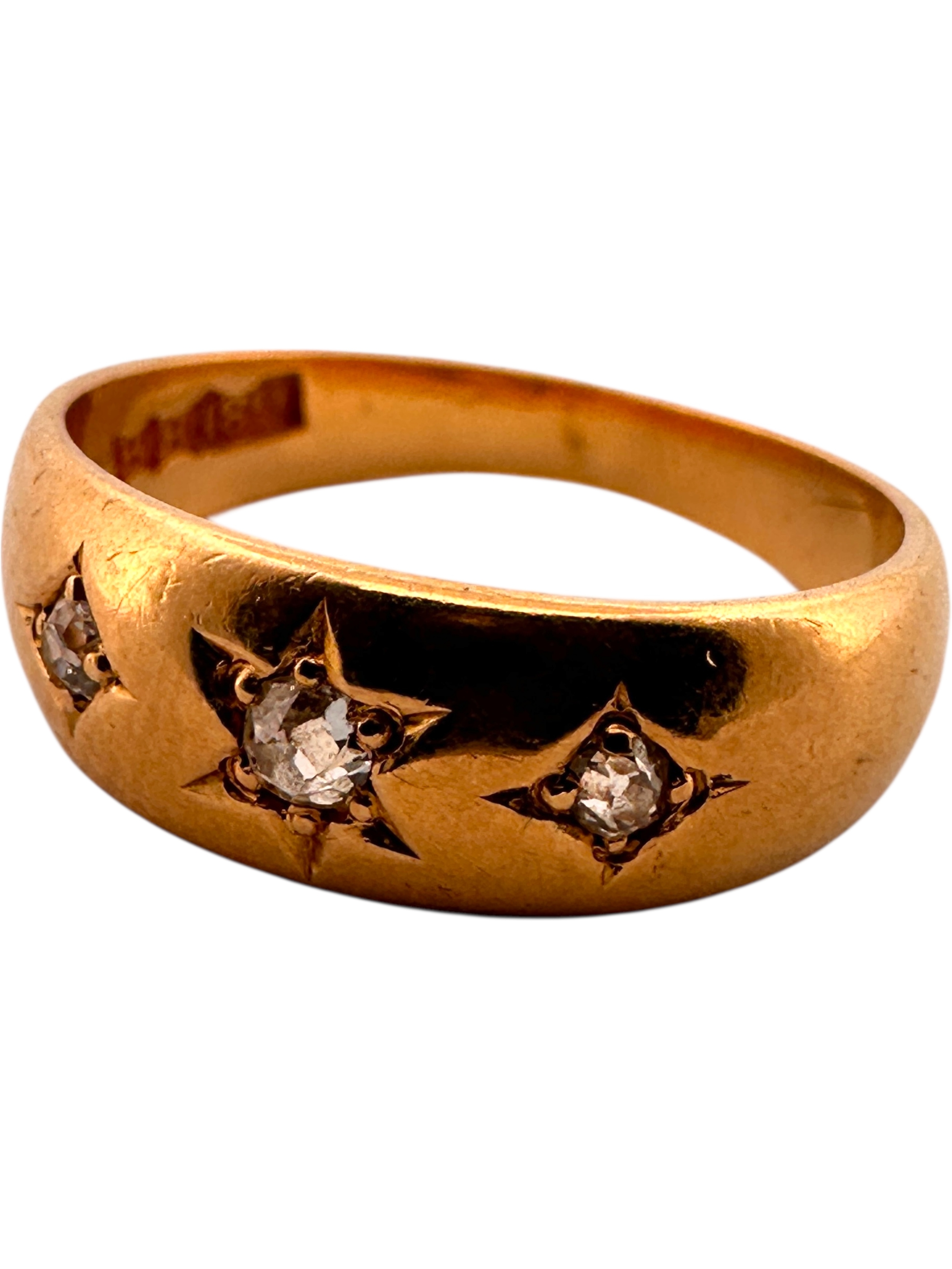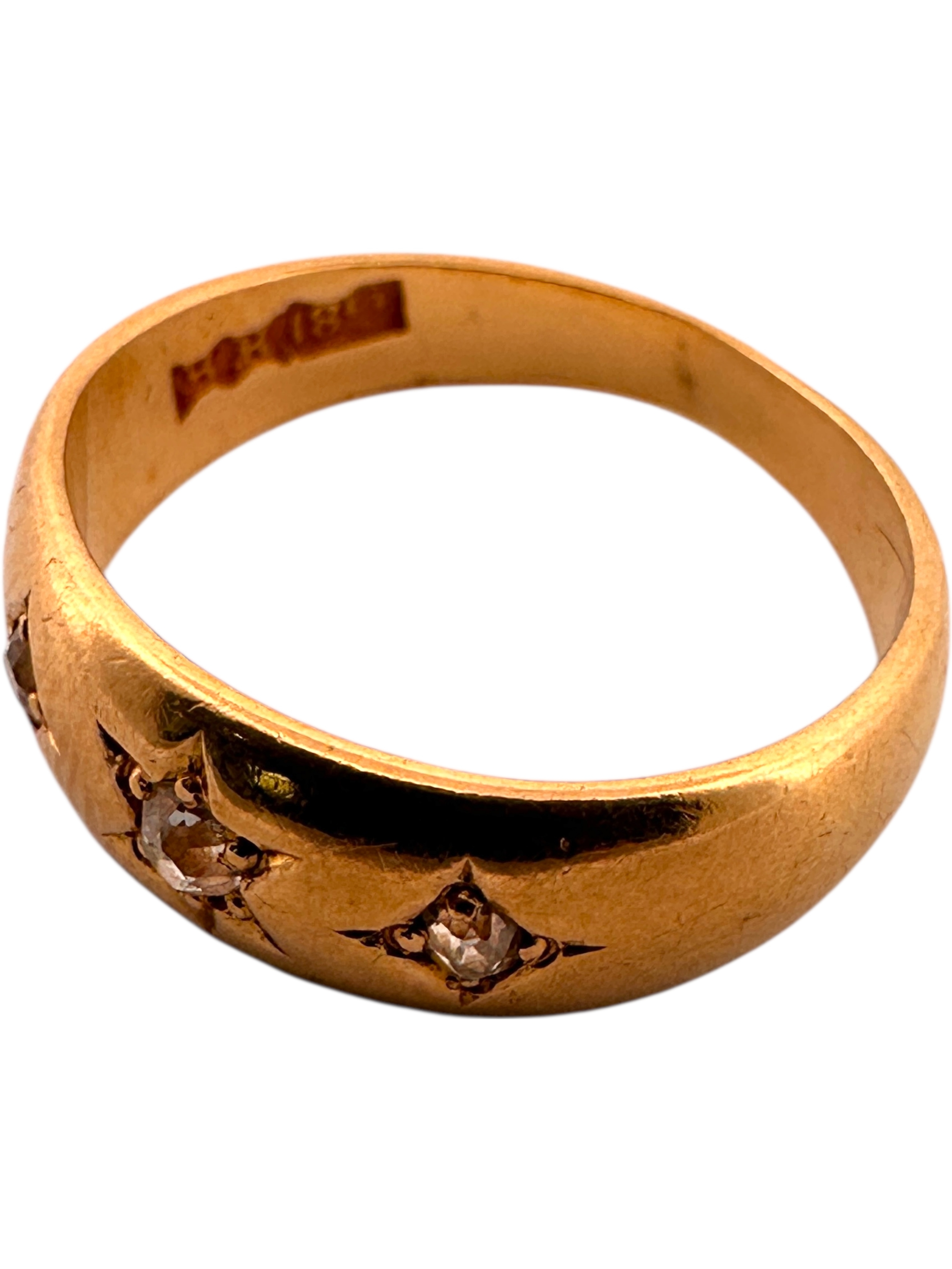 Eighteen Carat Gold Gypsy Style Ring set with Three Diamonds. Size J. 3.59g