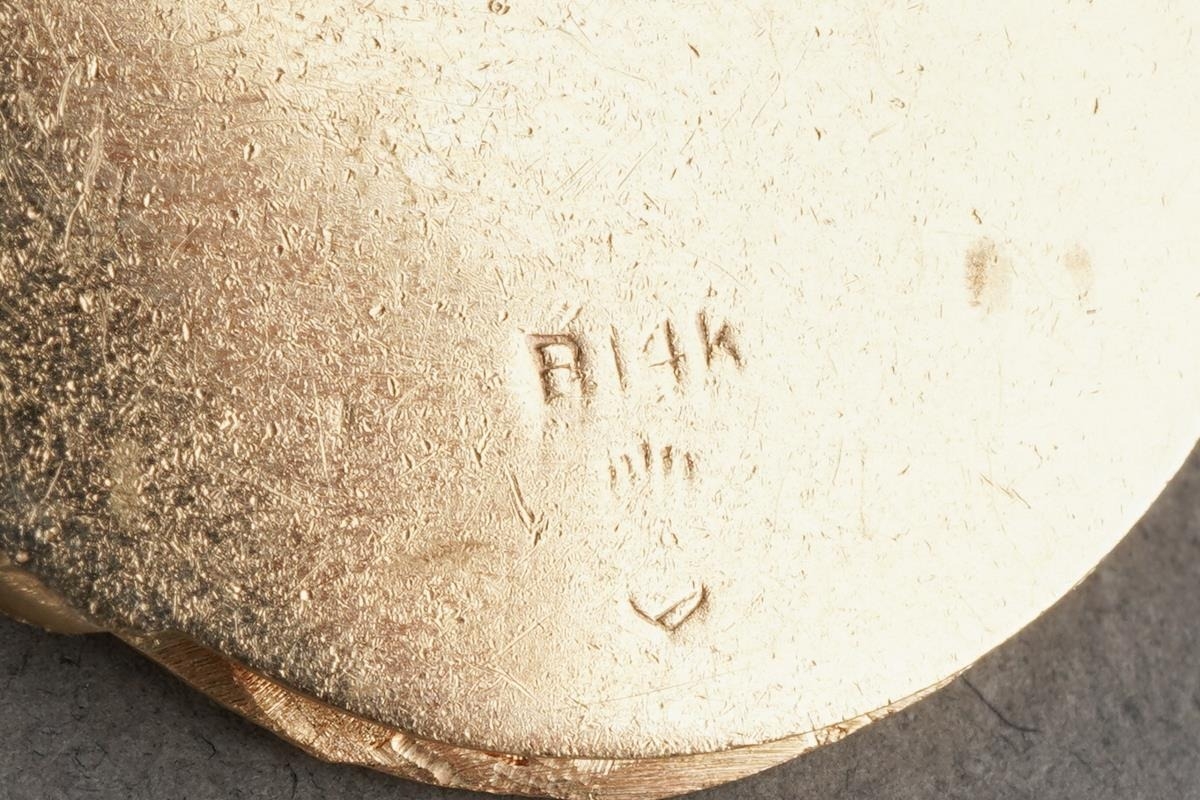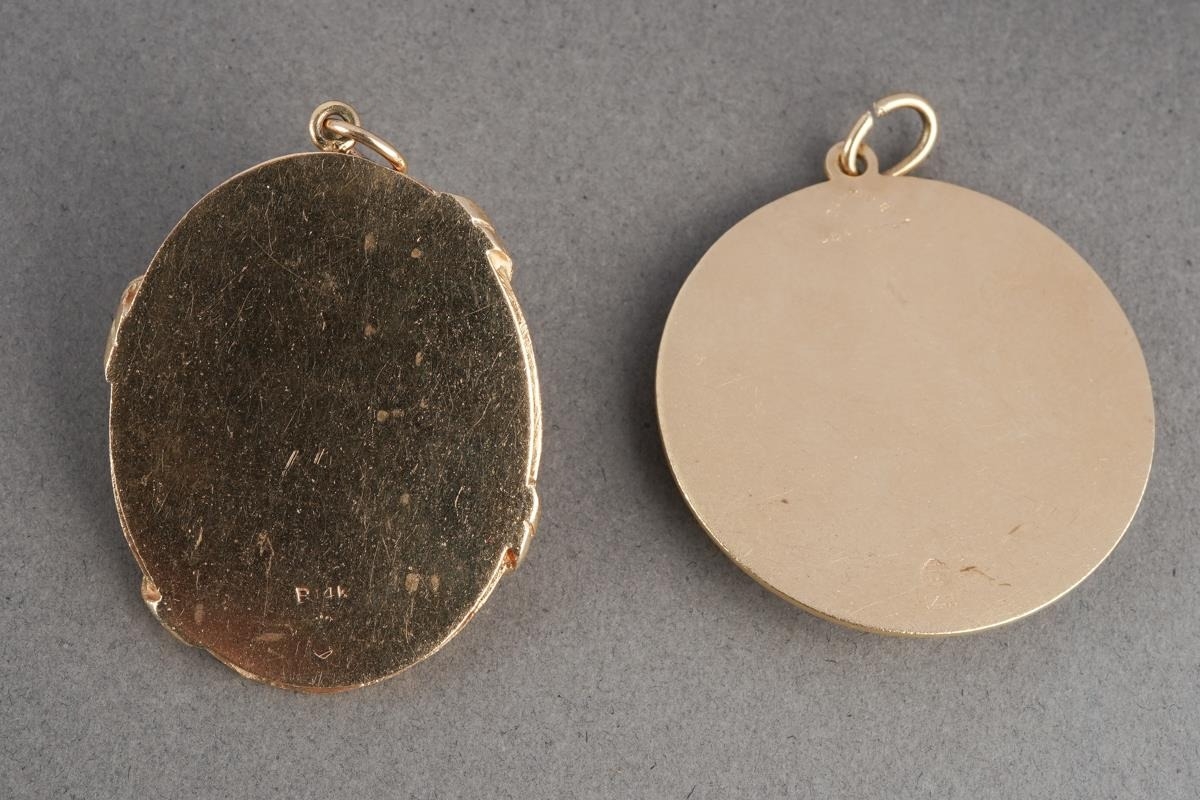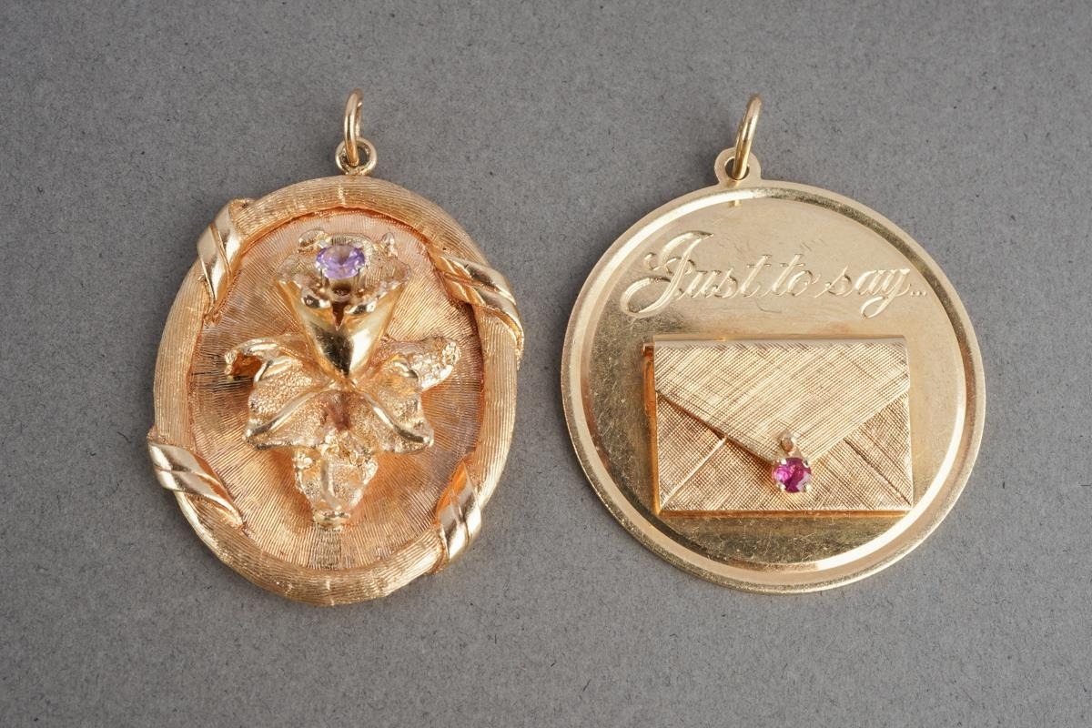 Two American Dankner charms. To include a floral charm (stamped 14k, sponsors mark rubbed), together with a 'Just to say I love you' charm with hinged detail (stamped 14k, sponsors mark 'D', 14k), approx gross weight 22.67grams.