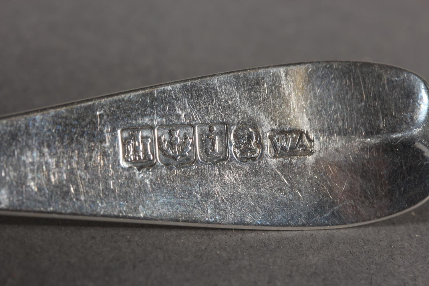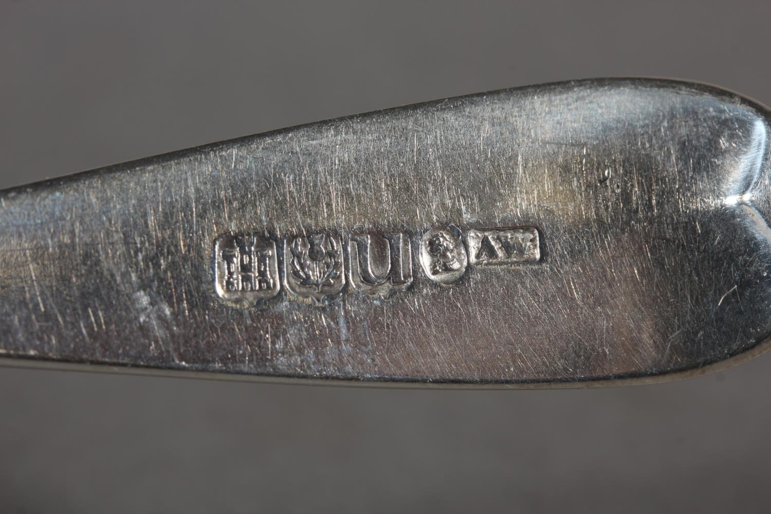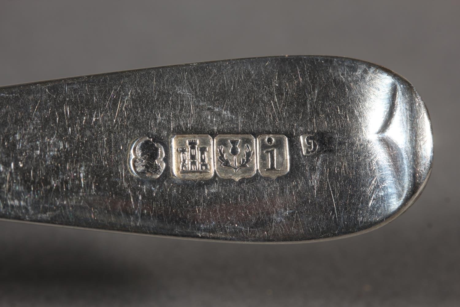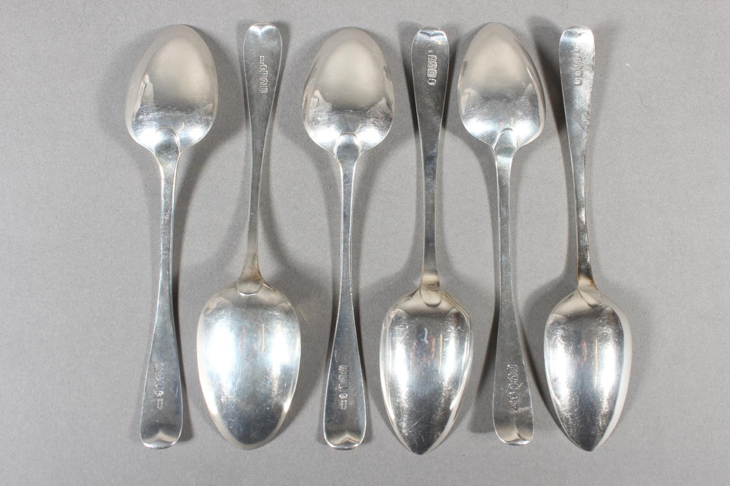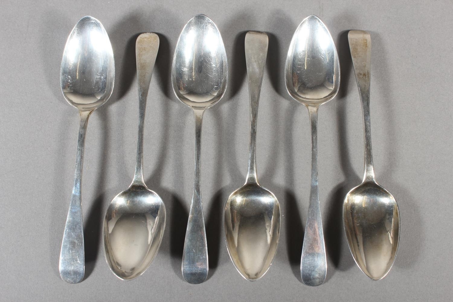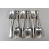 Harlequin set of six Scottish silver dessert spoons, makers WA, AW and JE, all Edinburgh, 180g.