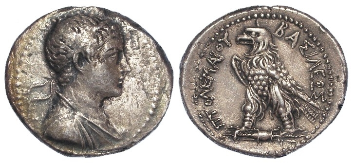 Ancient Greek: Ptolemaic Empire, Ptolemy V Epiphanes (205-180BC) silver Tetradrachm of an uncertain Phoenician mint c.203-2 BC. Type with no control marks. Draped bust r. / PTOLEMAIOU BASILEWS, eagle standing left on thunderbolt. 13.53g. See Freeman & Sear - Gemini I, Session 1, lot 252. GF/GVF. Rare.