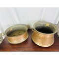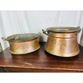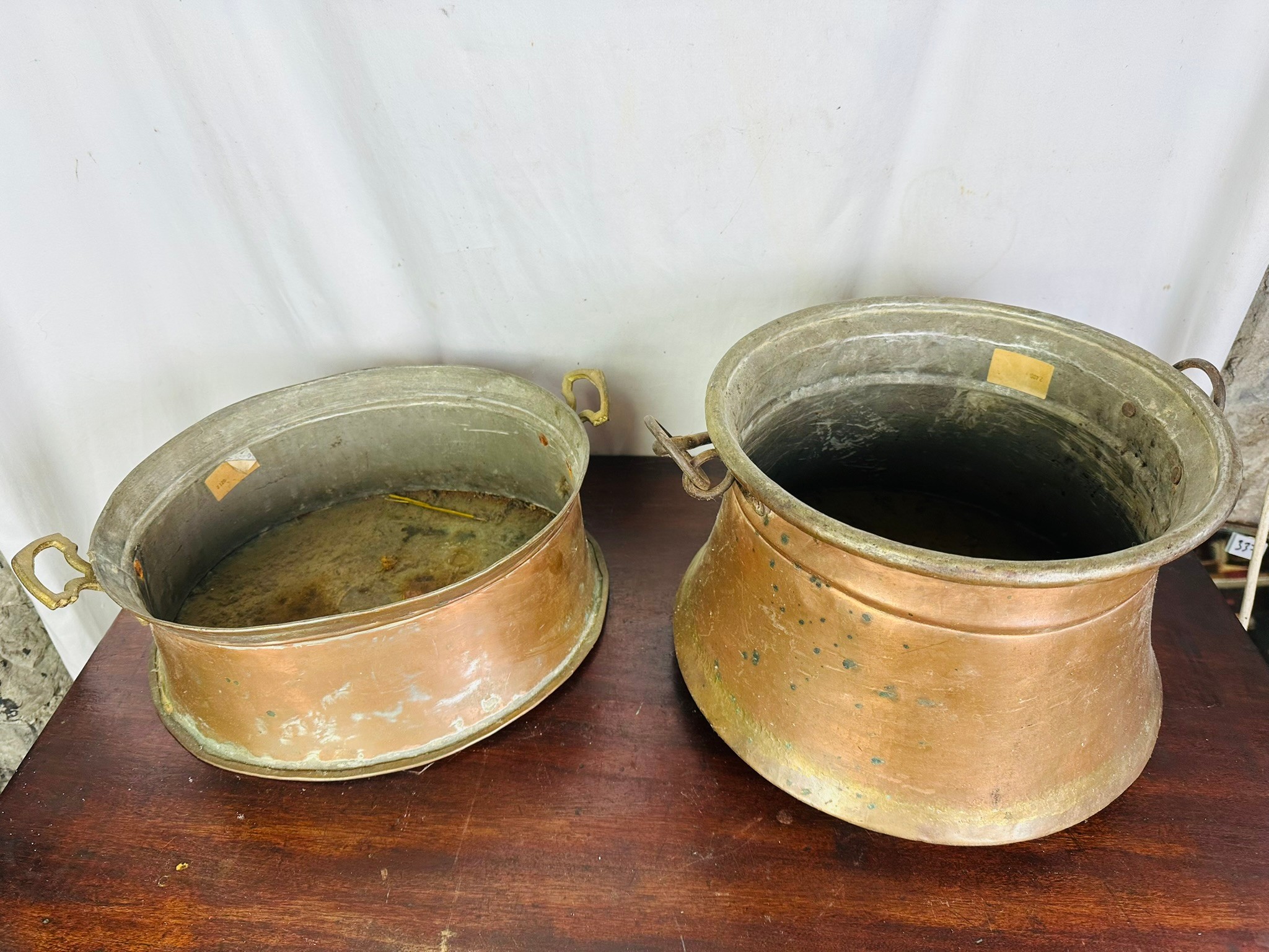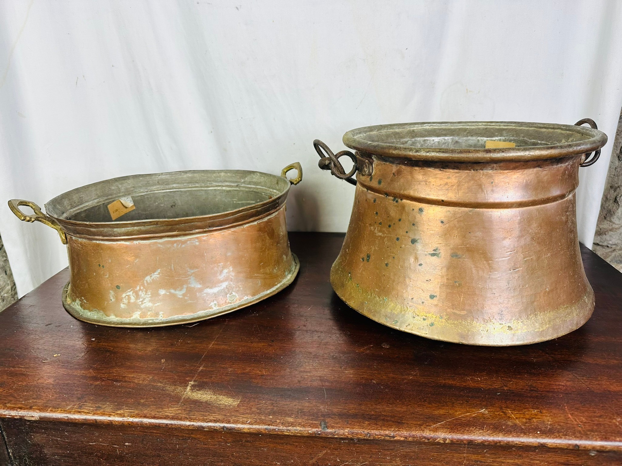 2 vintage hand beaten copper pots, 19''h x 11''d and 13'' x 10''d