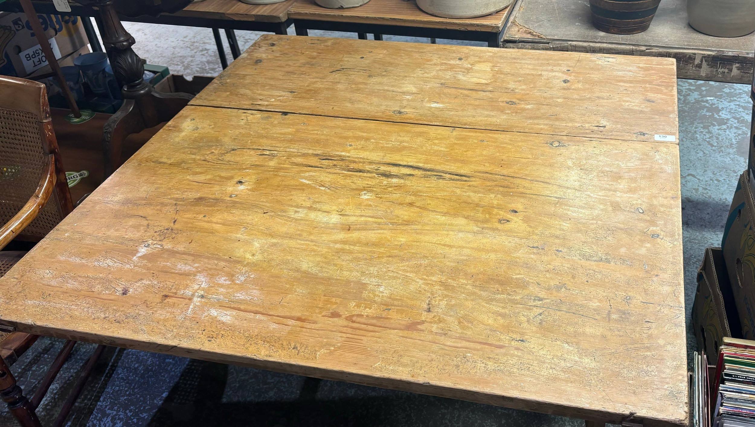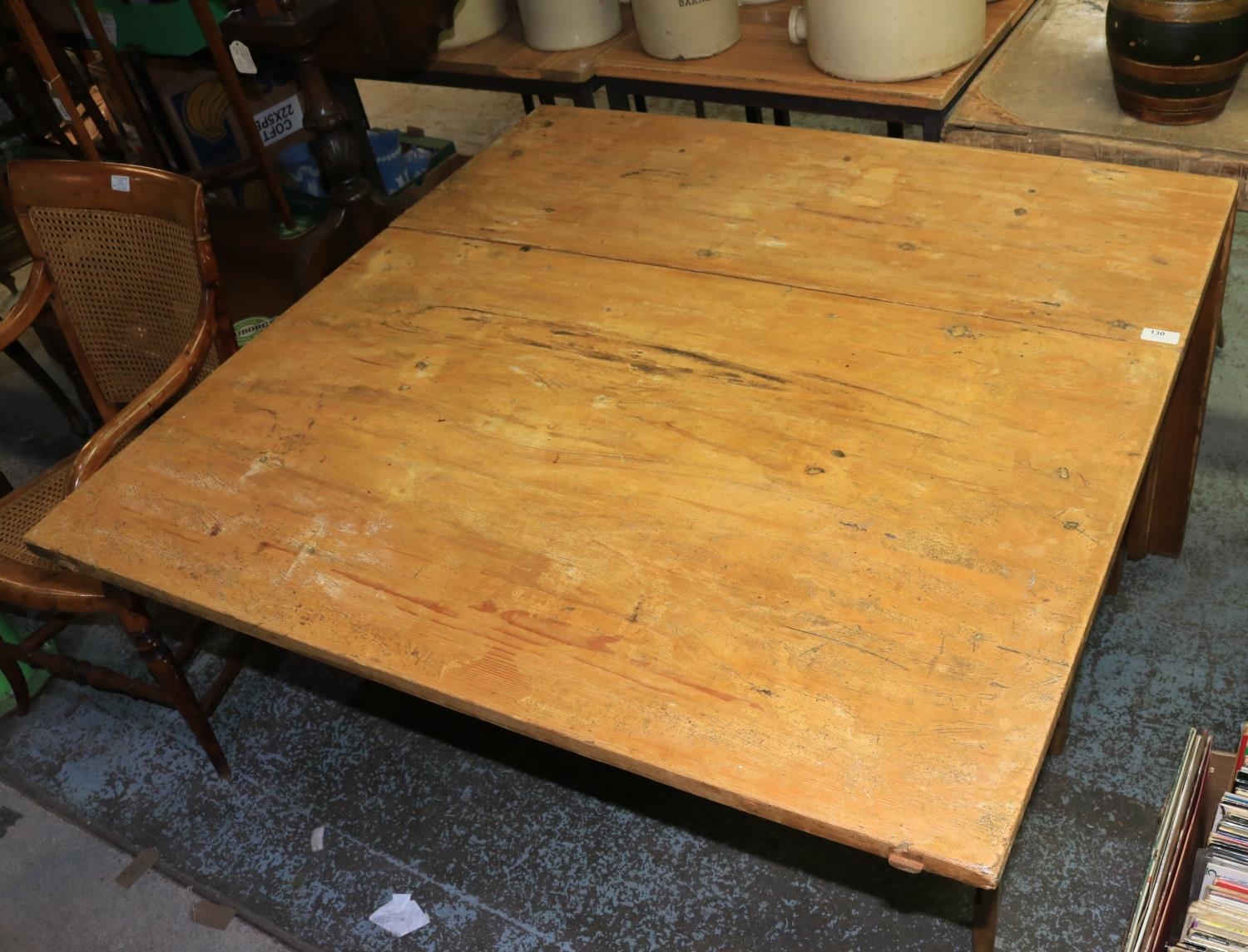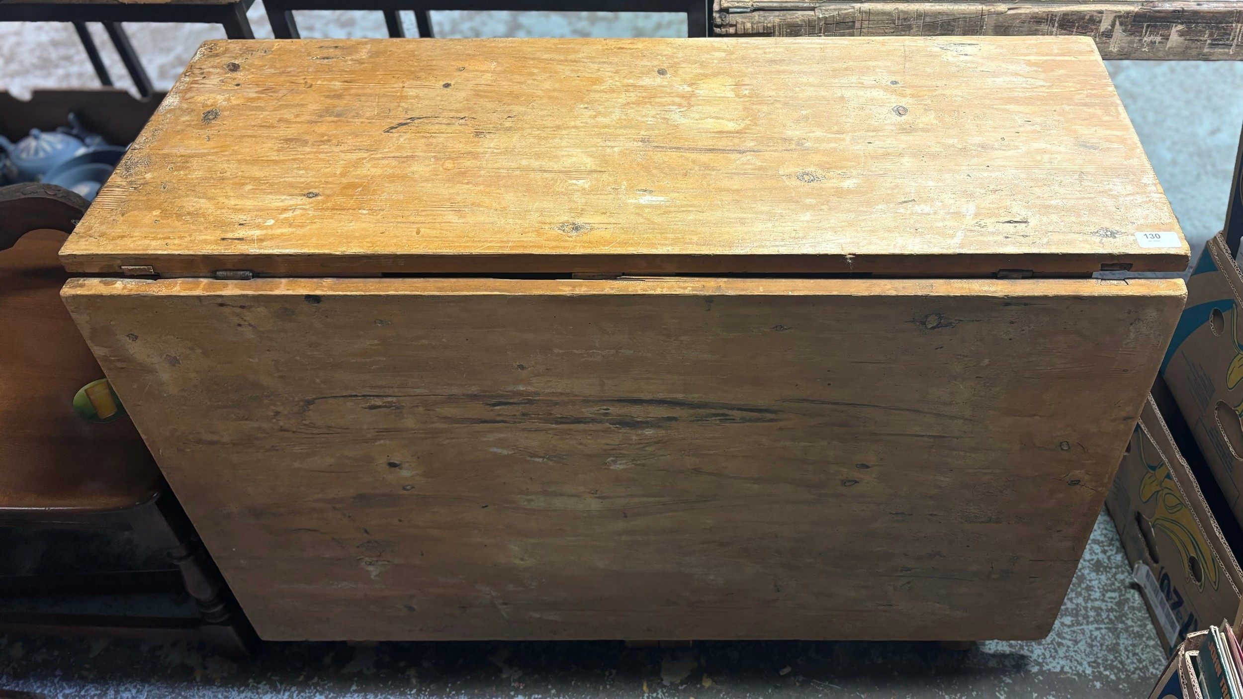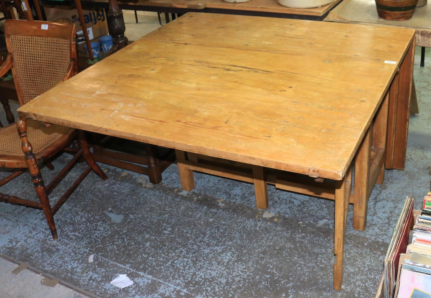 20th century narrow pine drop leaf double gate leg table. W105cm