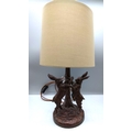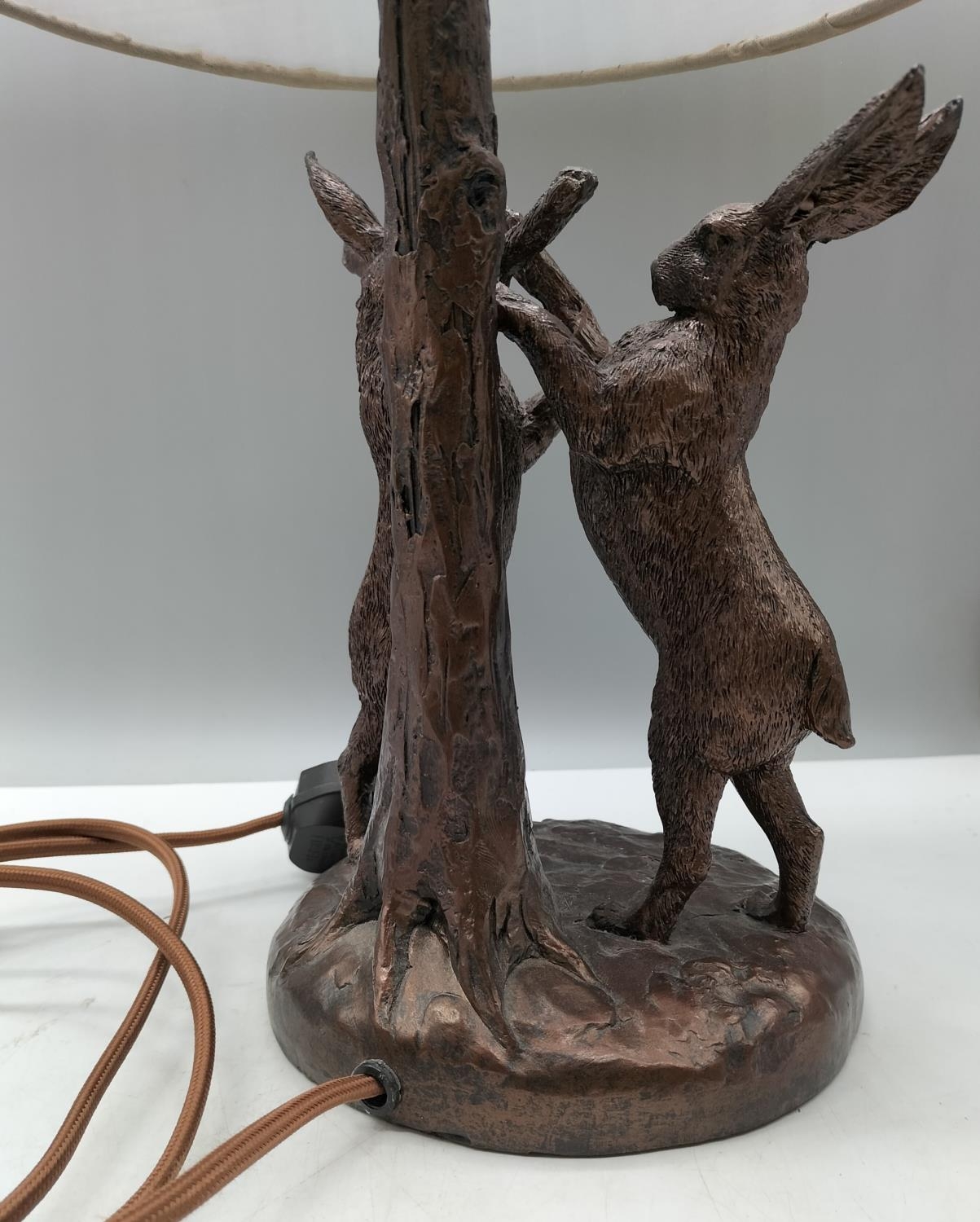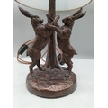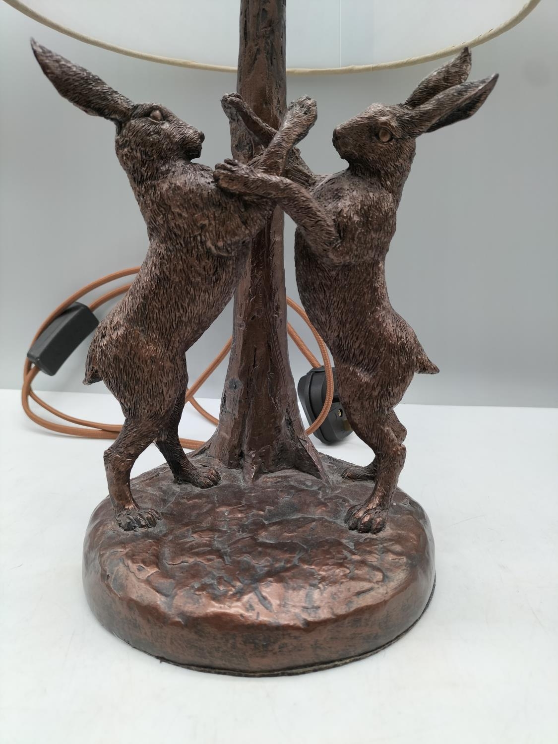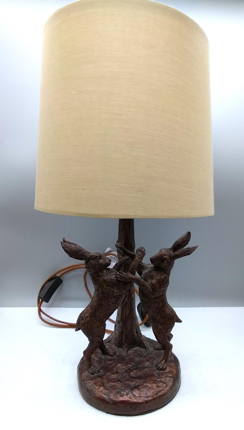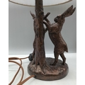 Pair of Fighting Hares Table Lamp. 43cm High including Shade.