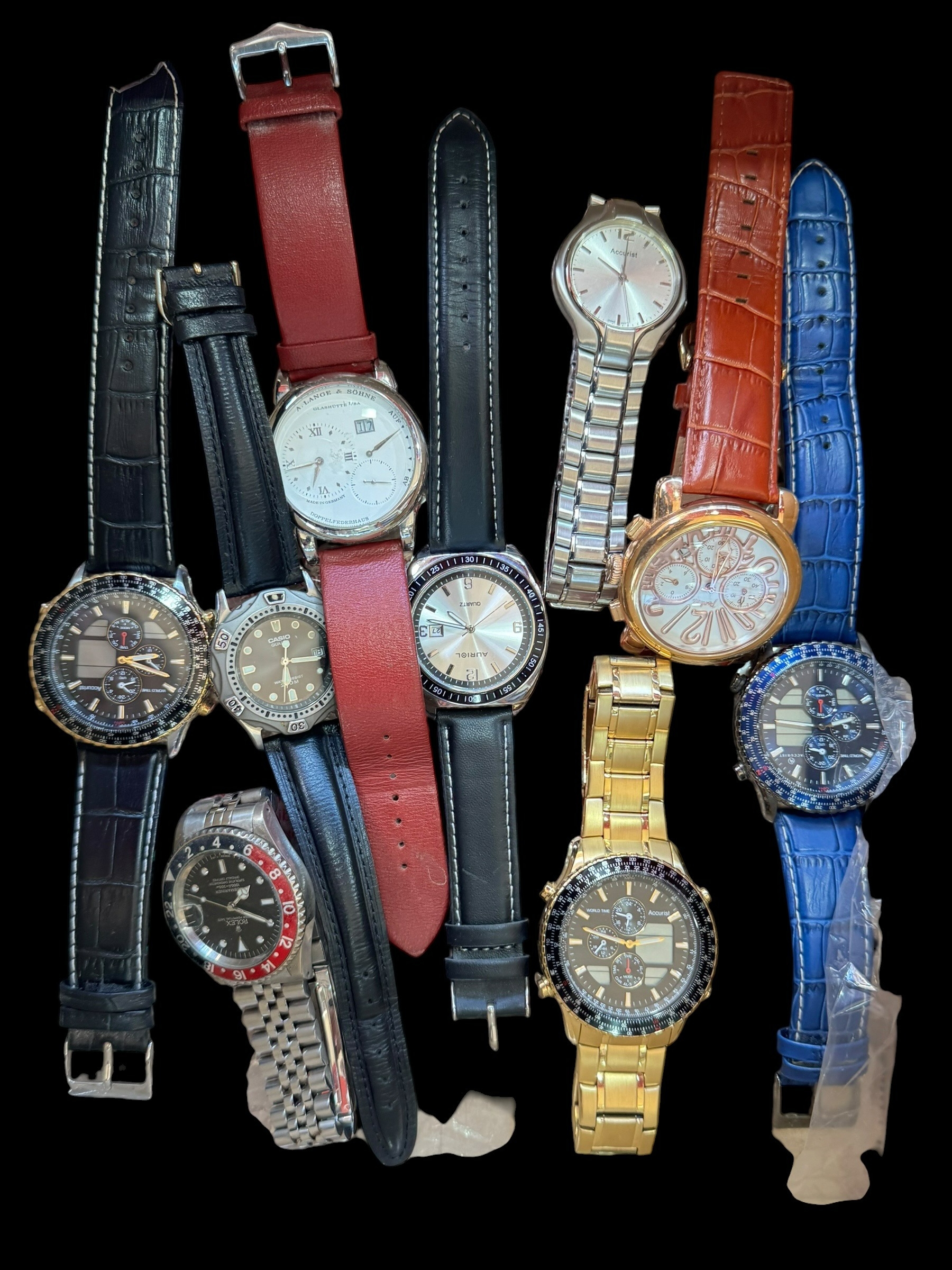 Nine gents wristwatches.