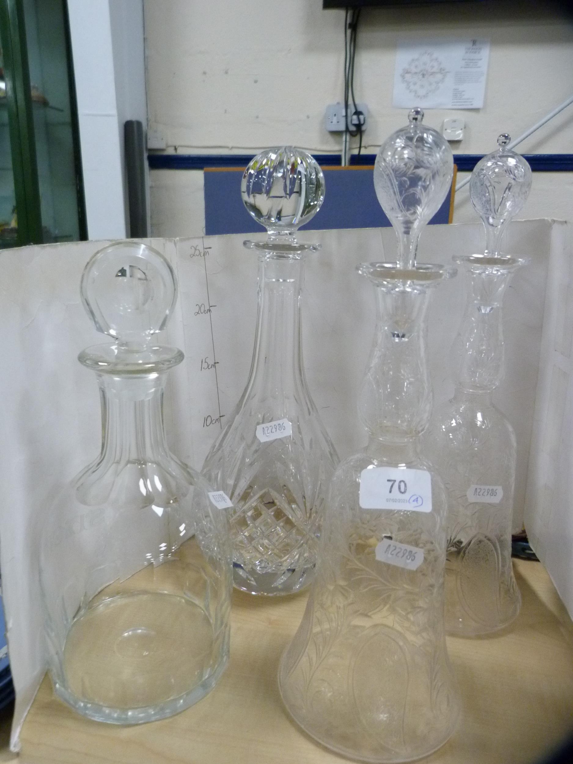 Pair of Late Victorian Bells glass decanters and stoppers and another two decanters and stoppers. (4)