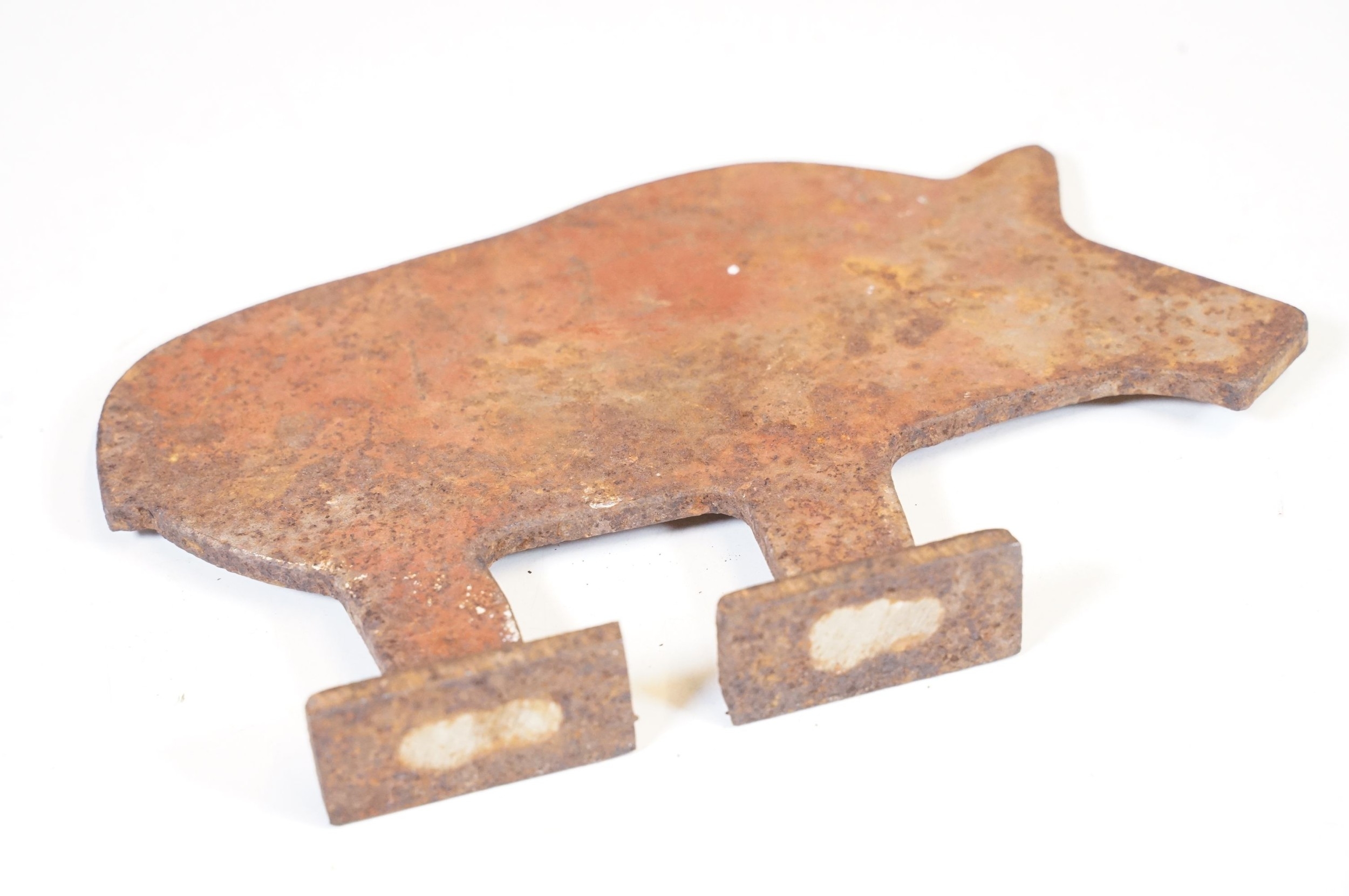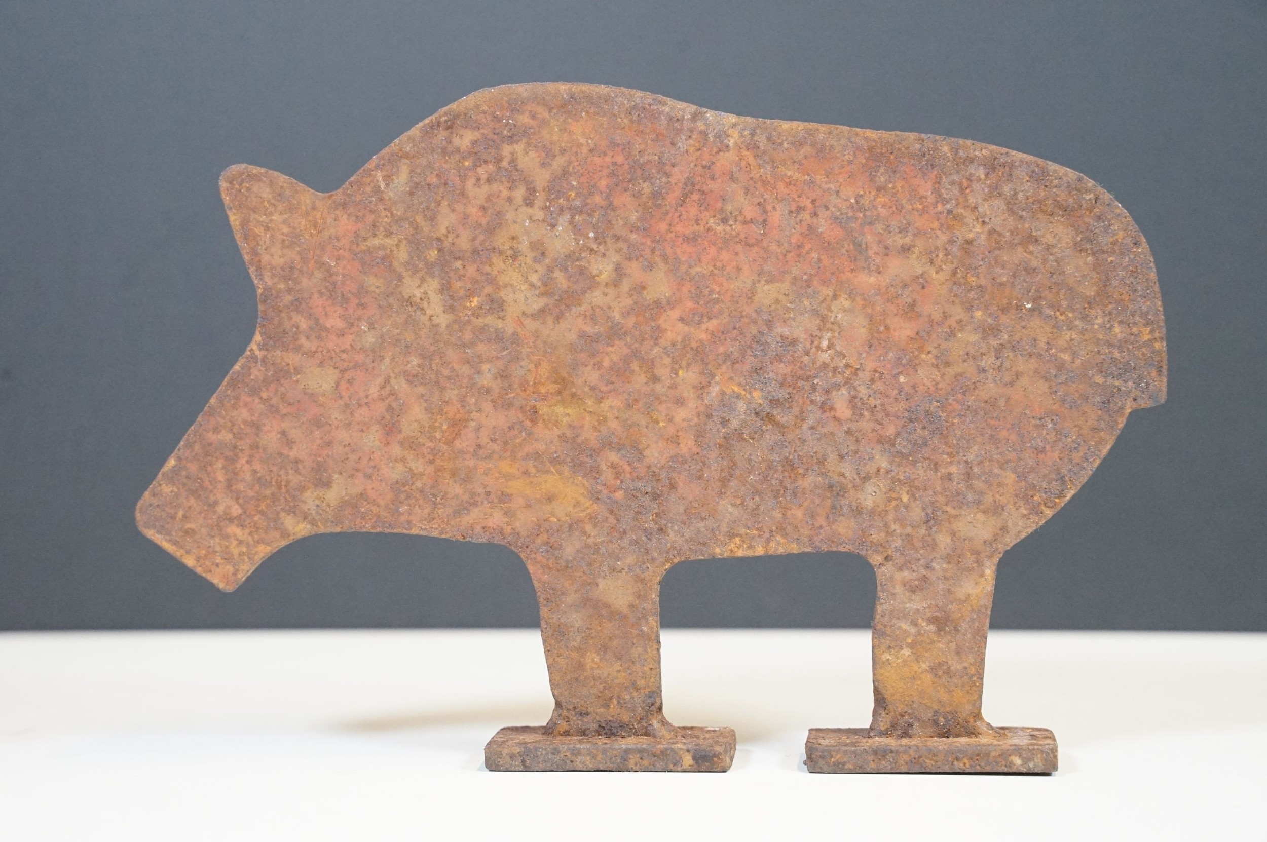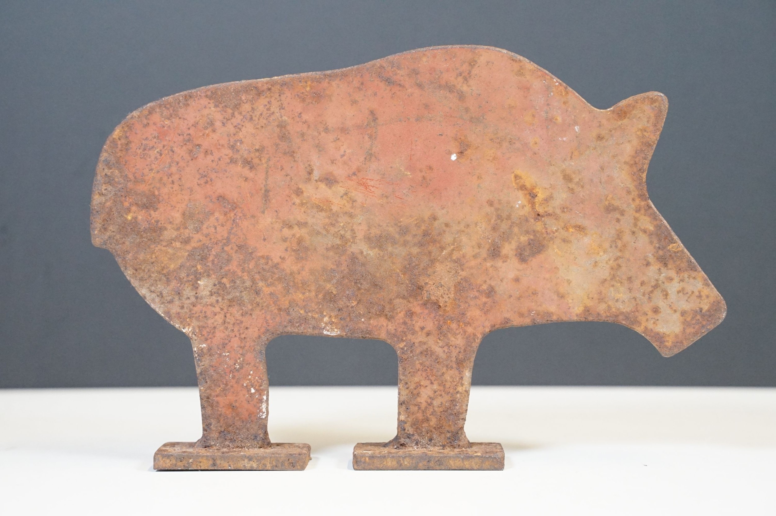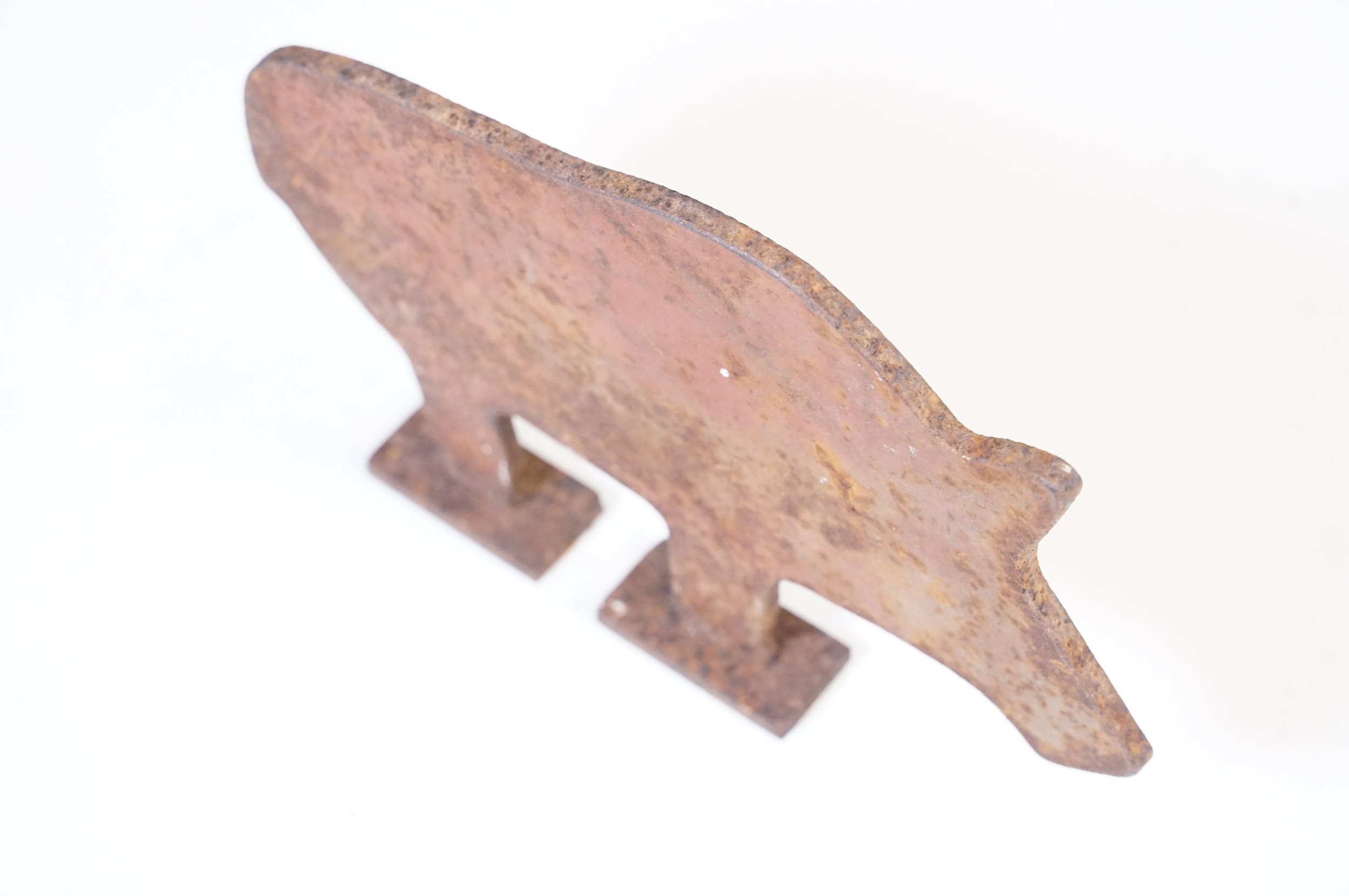 Early 20th Century Italian folk art cast iron wild boar / pig hunting shooting target practice on two legs, measures approx 21cm x 13cm